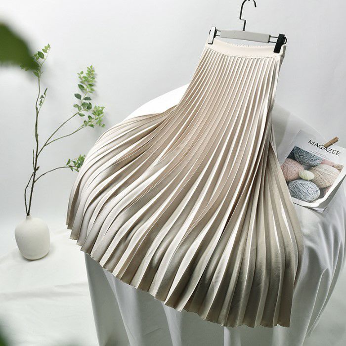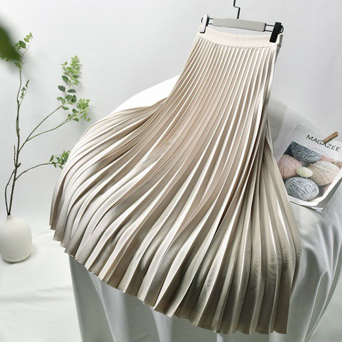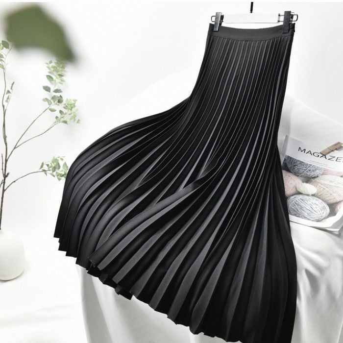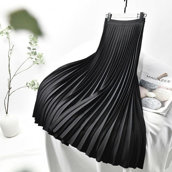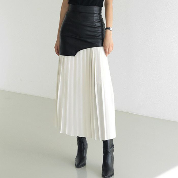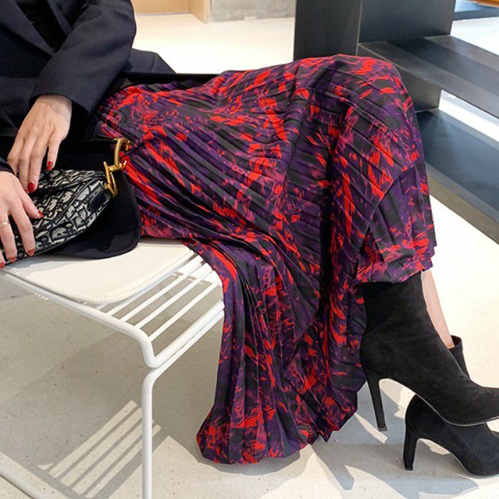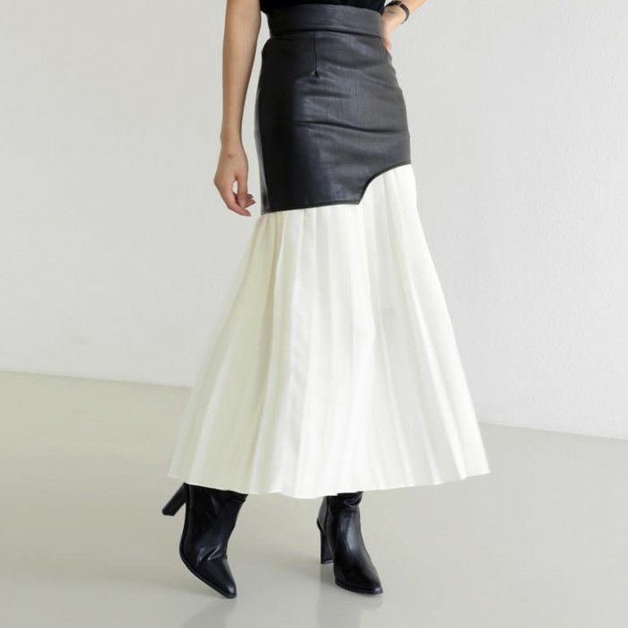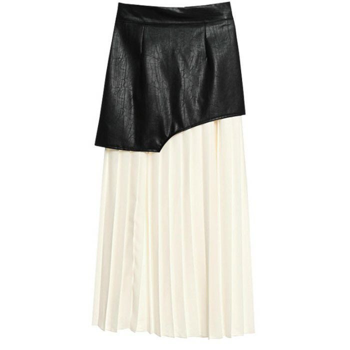 予約 2color エコレザー レイヤード プリーツ シフォン ロング スカート
