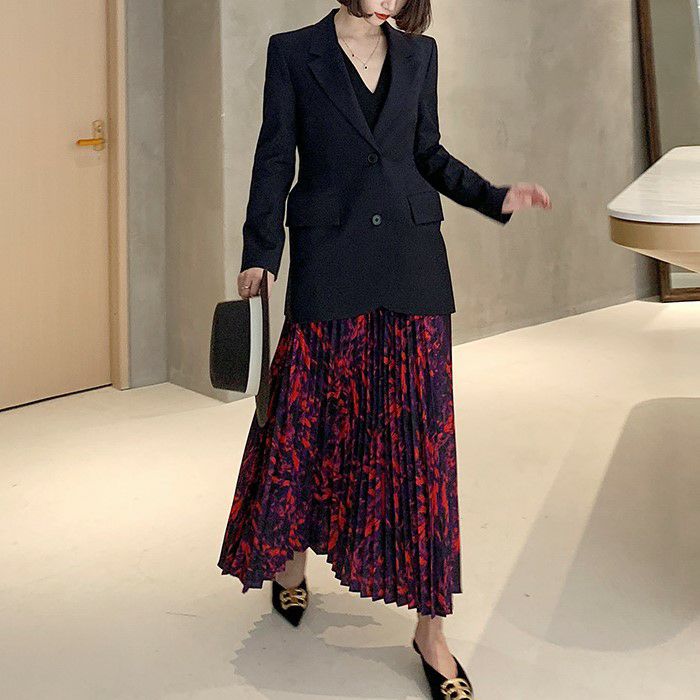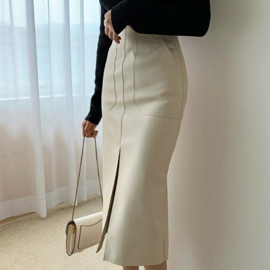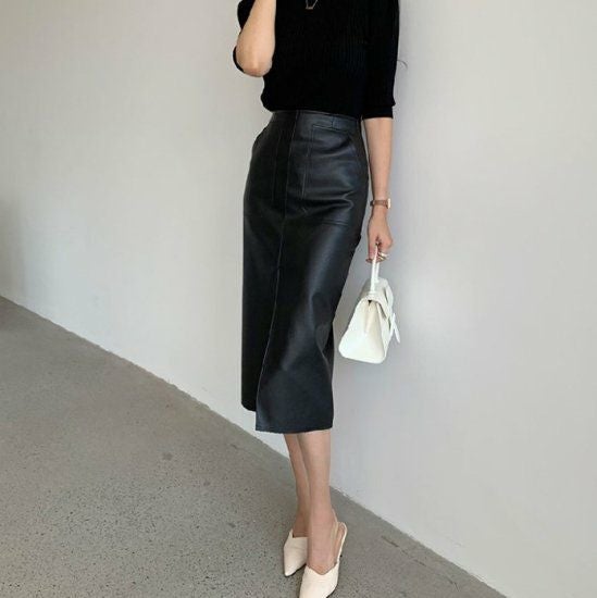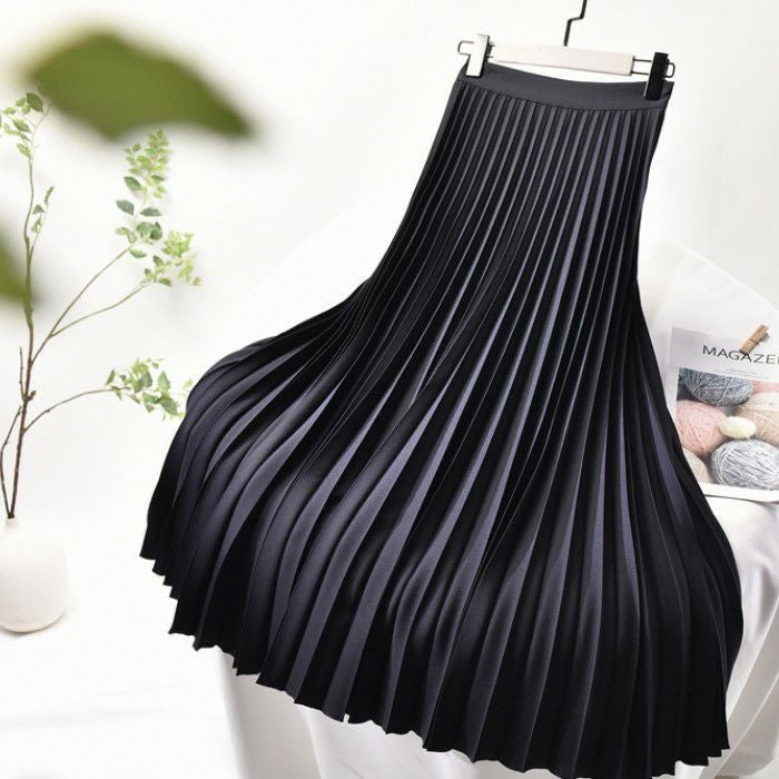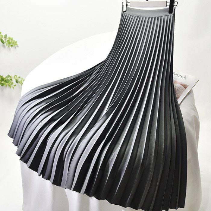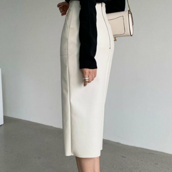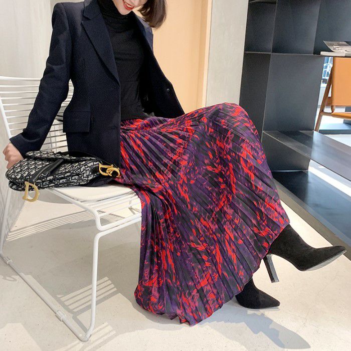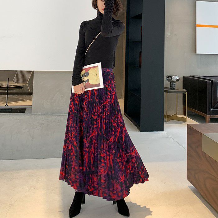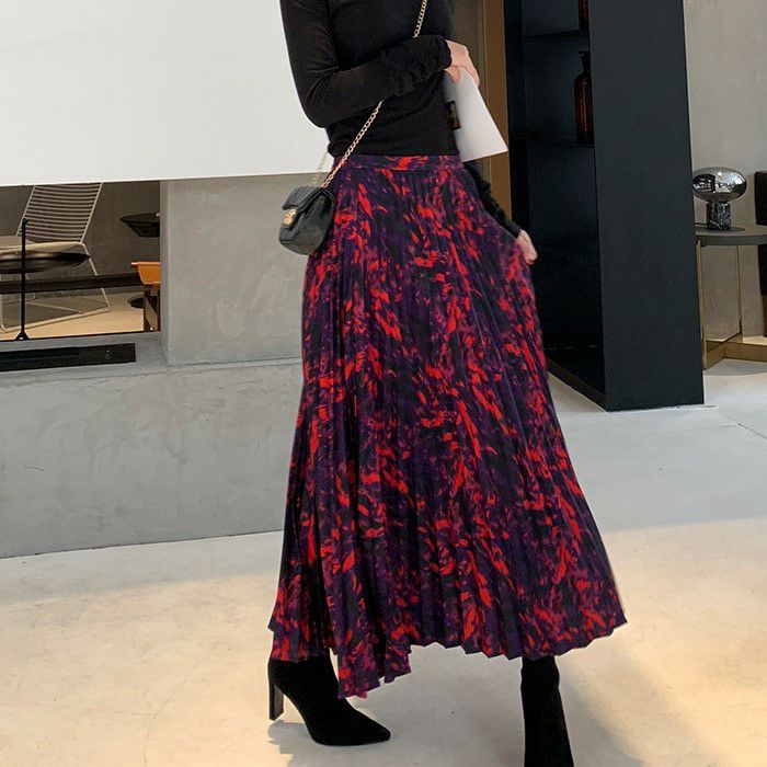 予約 2color エコレザー レイヤード プリーツ シフォン ロング スカート