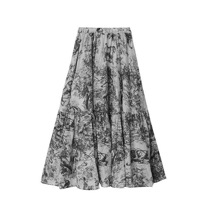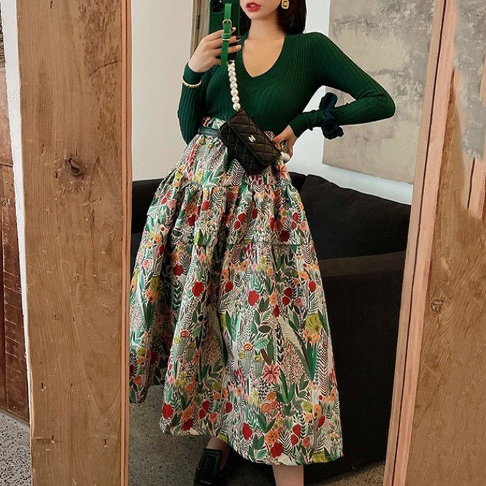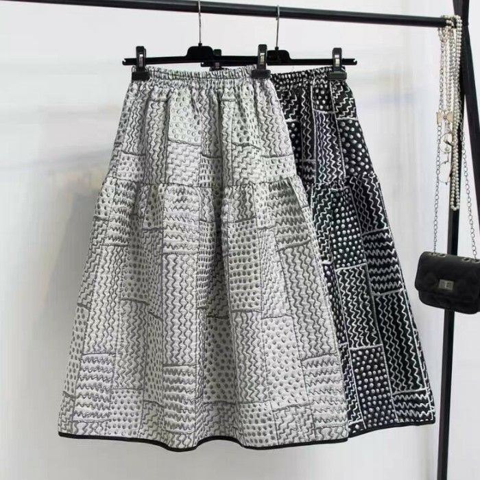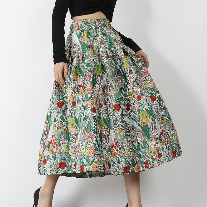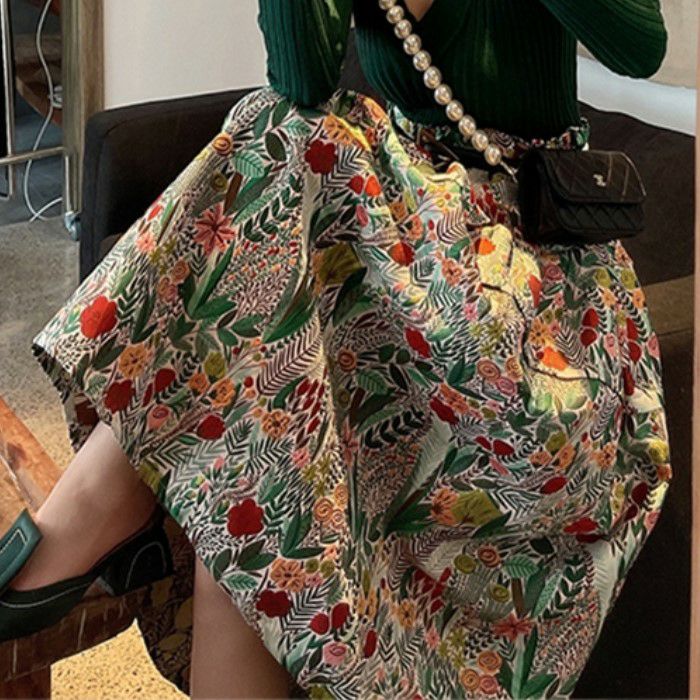 予約 2color ボタニカル 刺繍 フレアー スカート