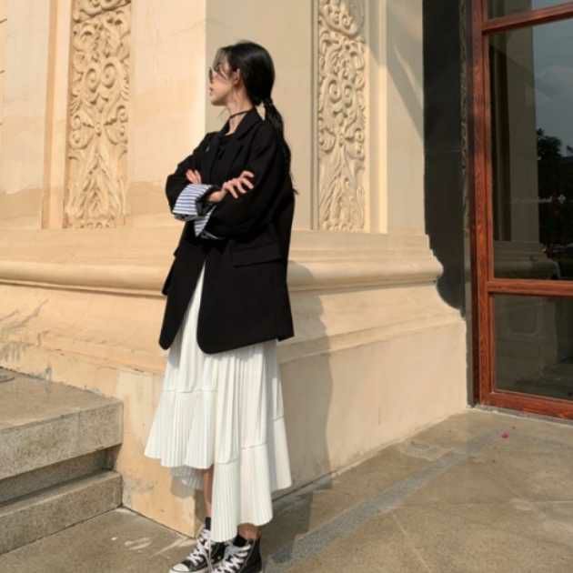 予約 2color ピンタック プリーツ フレア ロング スカート