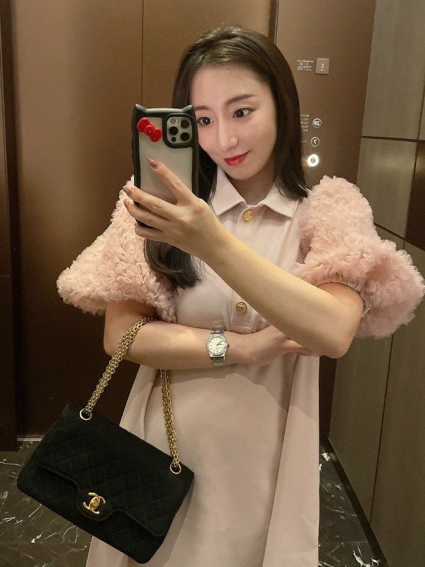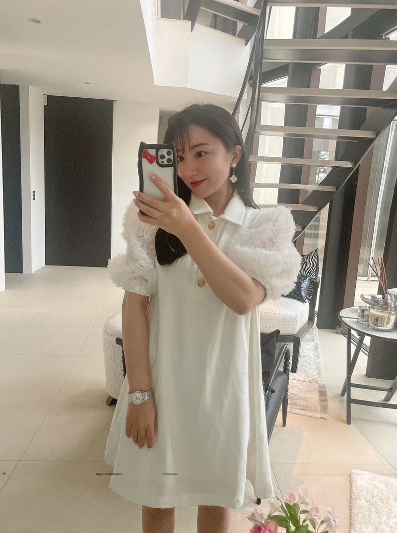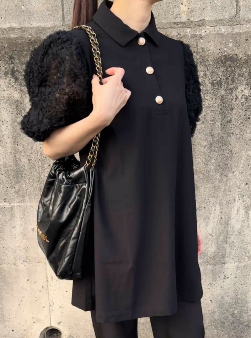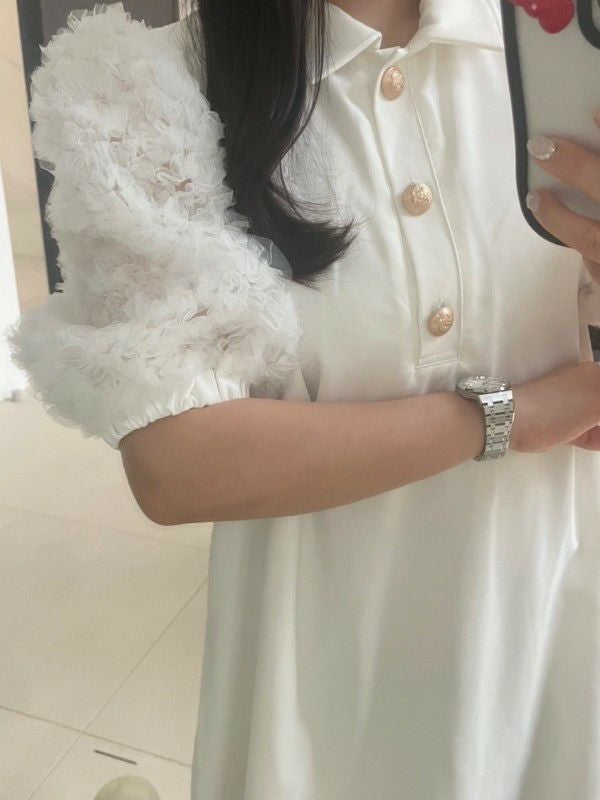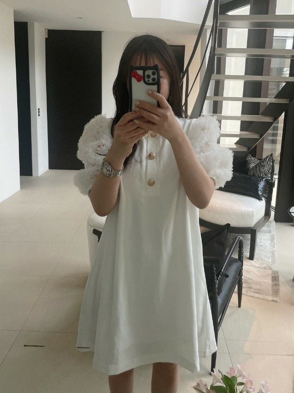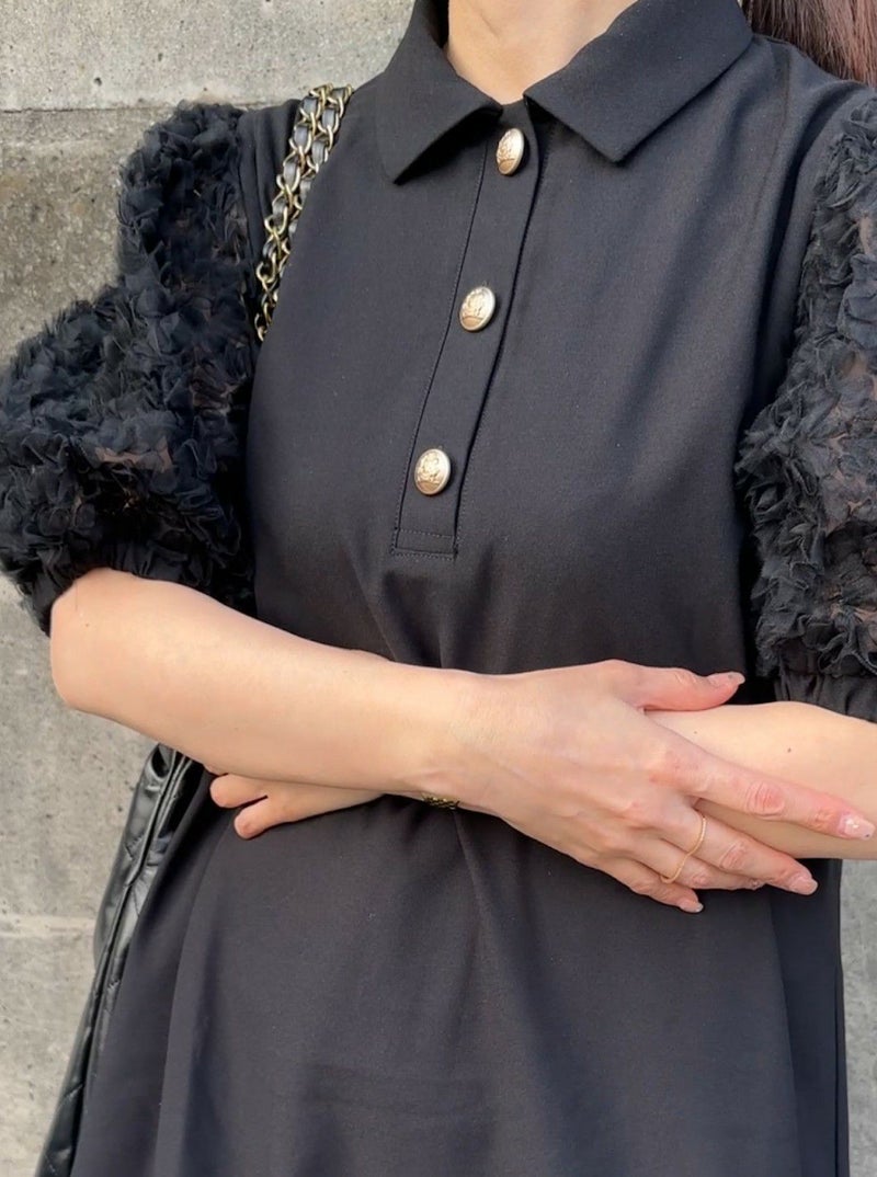 前田朝香さんコラボ 3color チュール袖 ゴールドボタン ワンピース