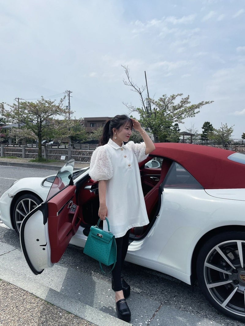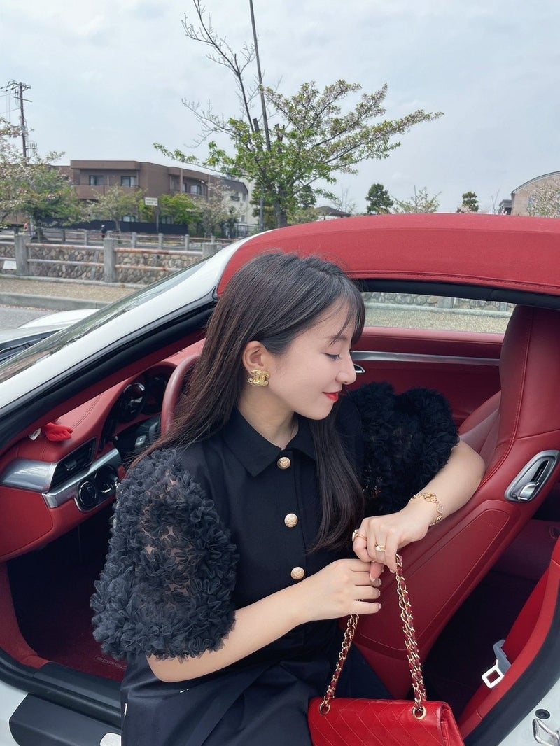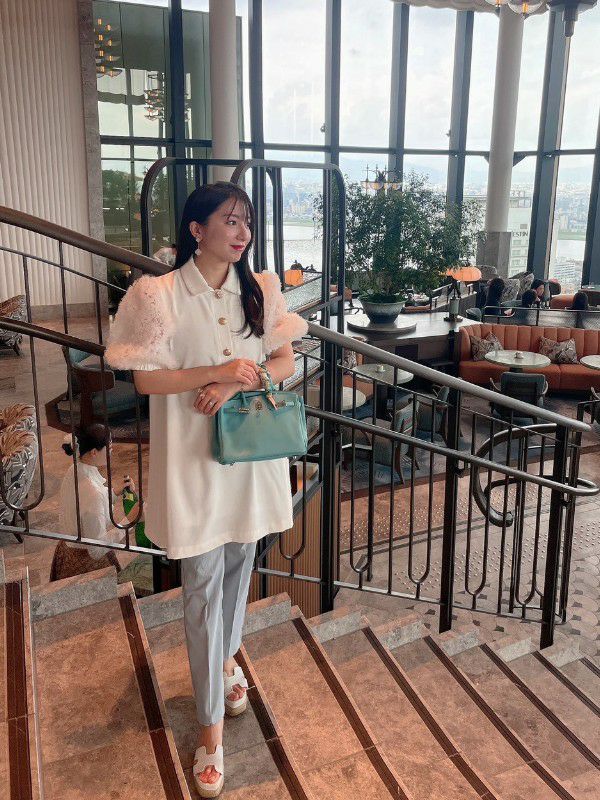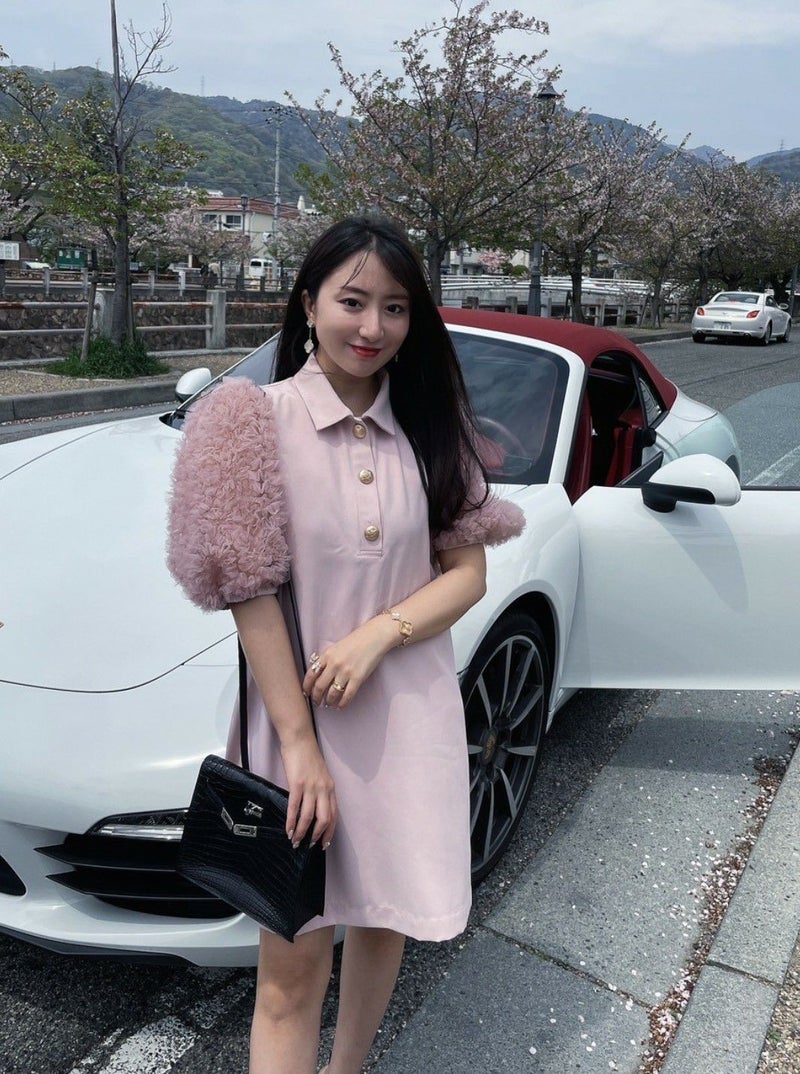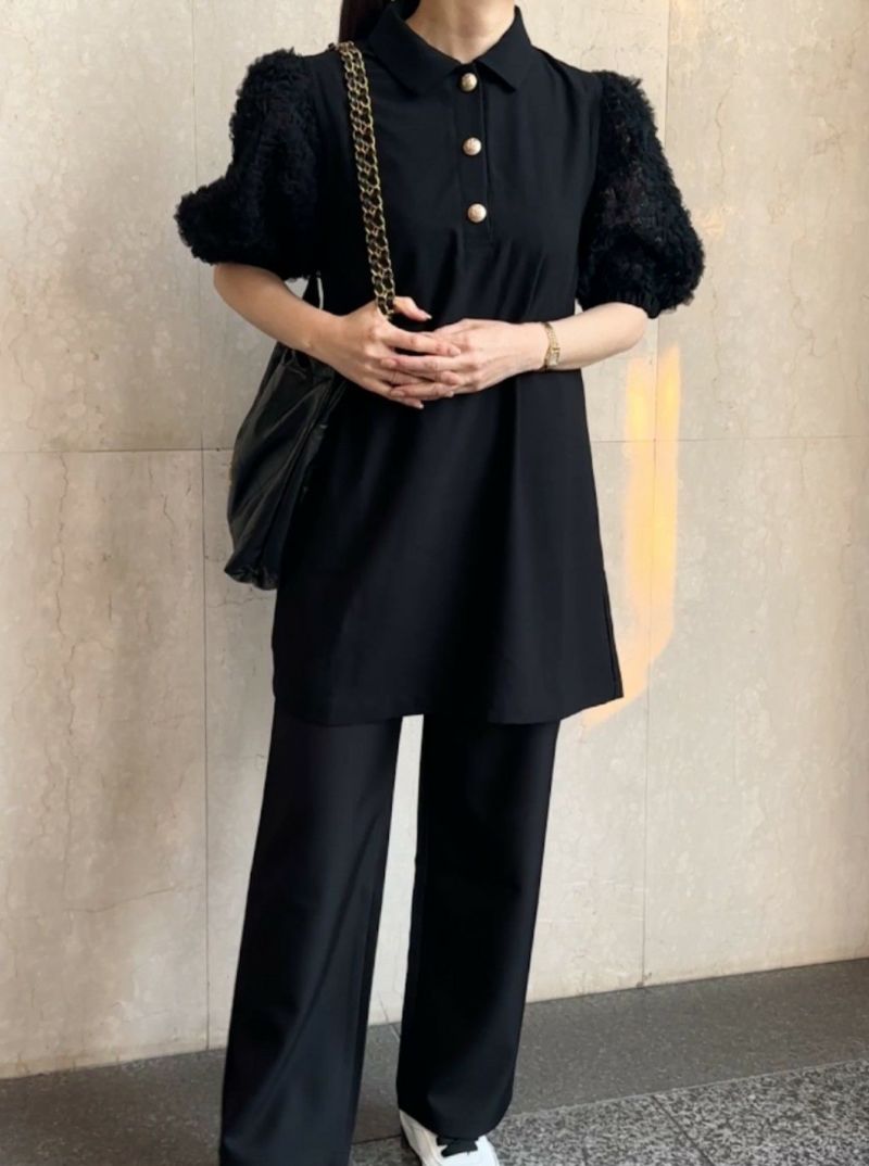 前田朝香さんコラボ 3color チュール袖 ゴールドボタン ワンピース