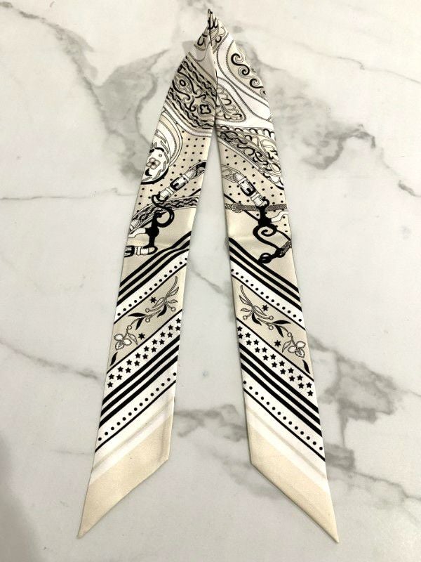 一部即納 4color SILK プリント マルチ ツイリー スカーフ