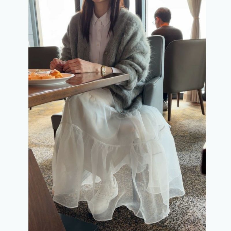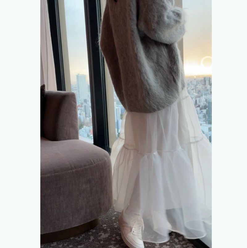 オーガンジーのシアー感が可愛いボリュームロングスカート
