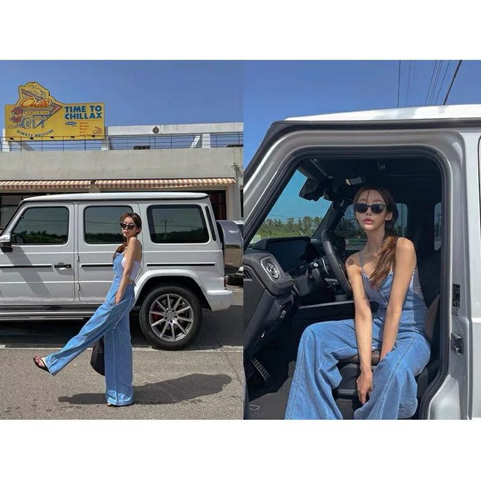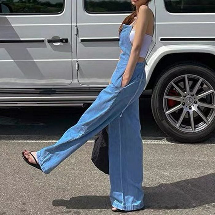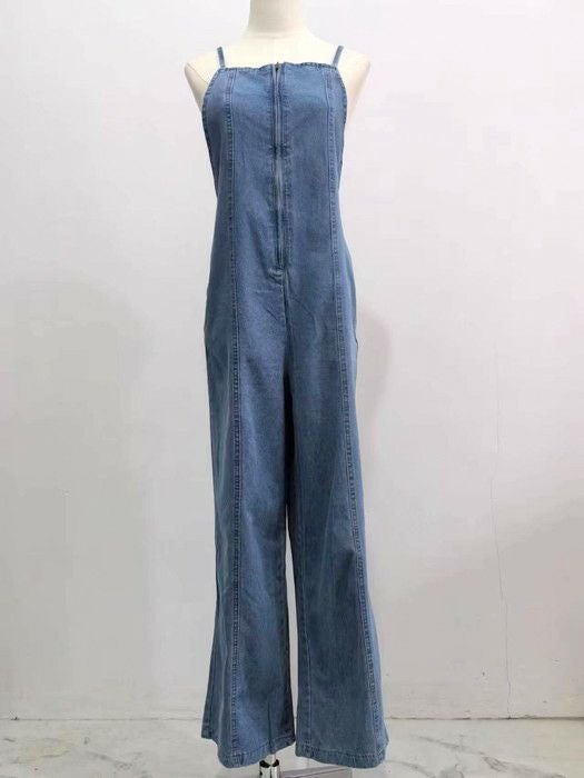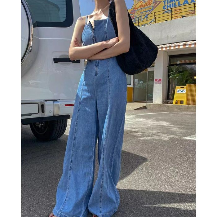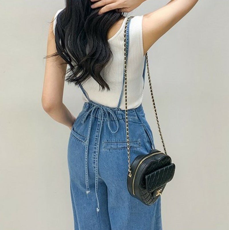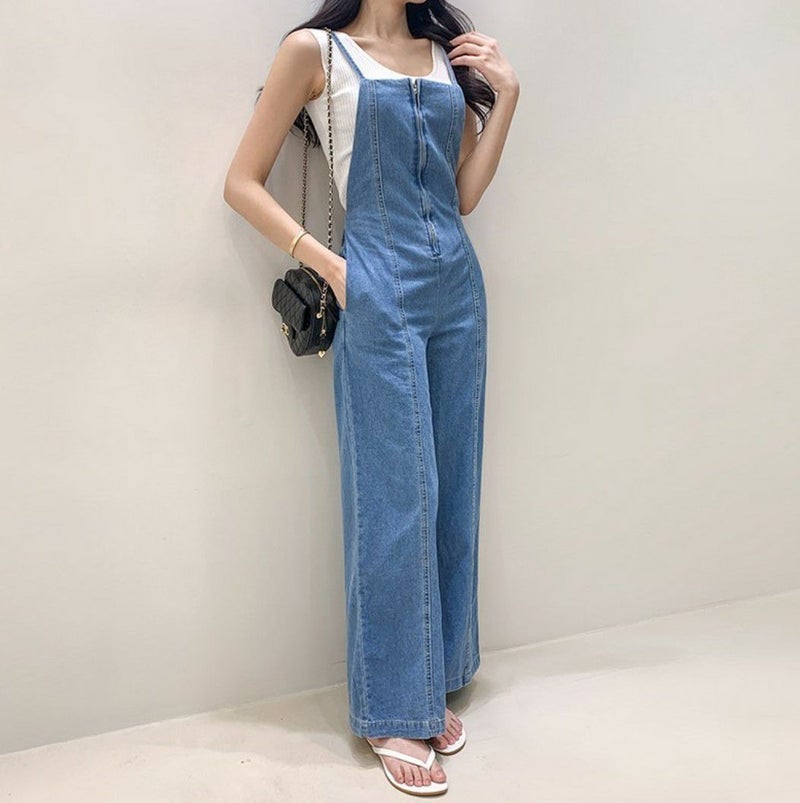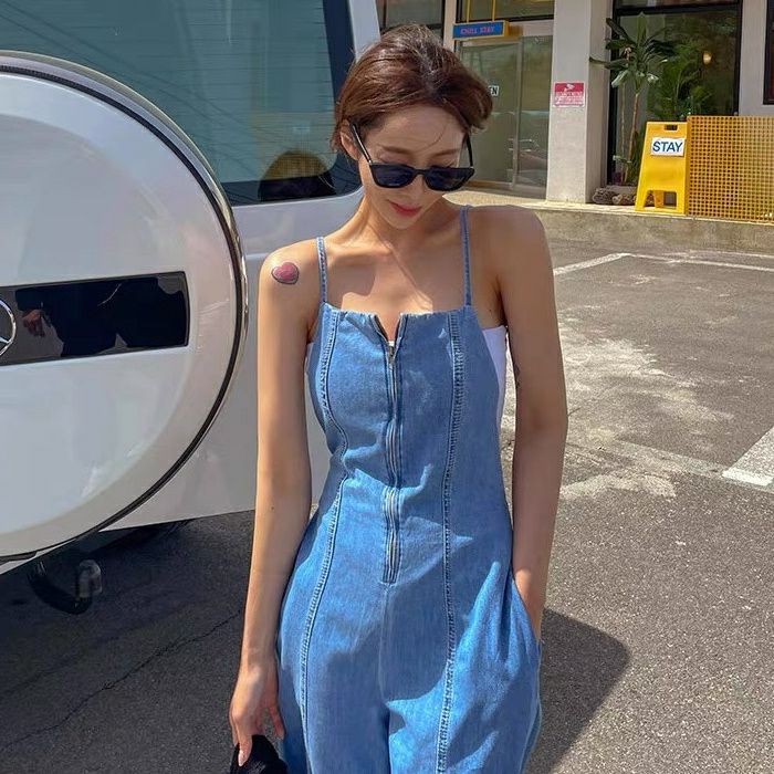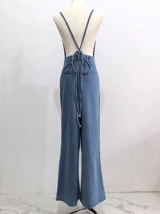 バックの華奢なストラップが女性らしく仕上げてくれるオールインワン