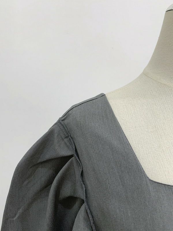 丸みのあるパフスリーブが柔らかな印象を演出しつつ、