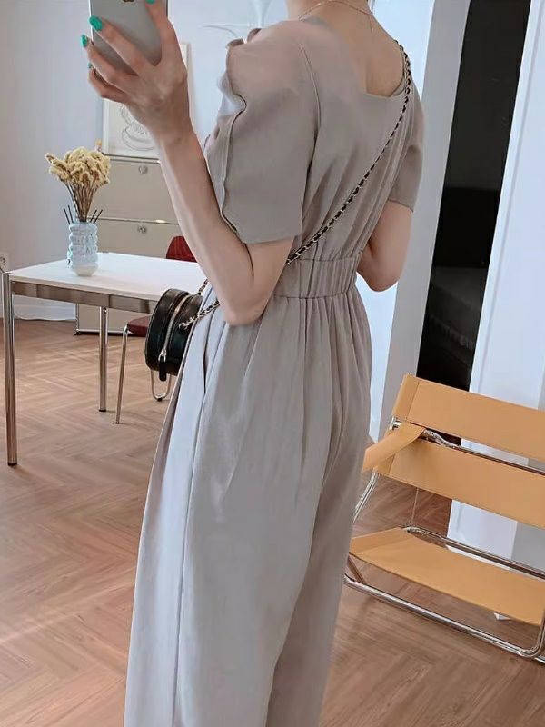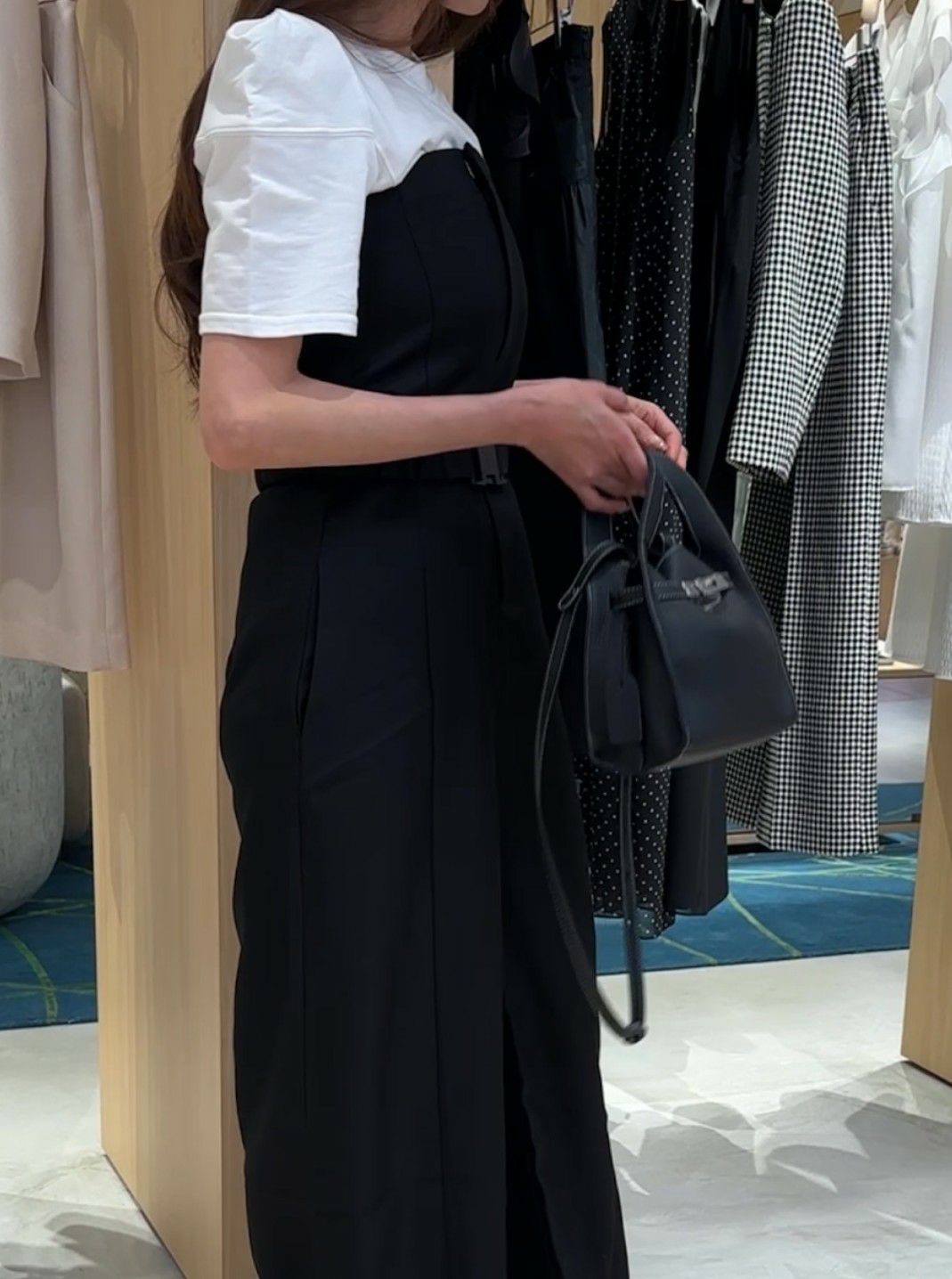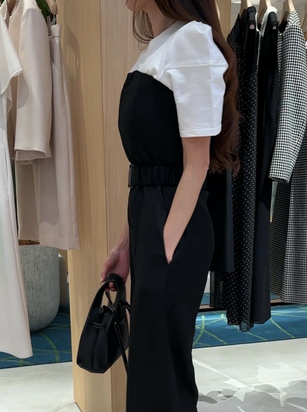 一部即納 3color レイヤード タック ワイドパンツ オールインワン