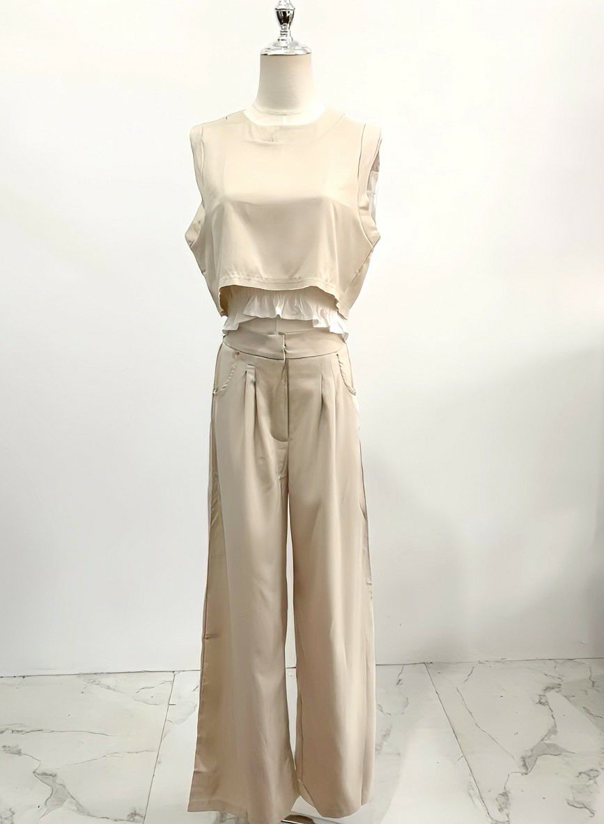 予約 スカラップ トップス ストレートパンツ セットアップ