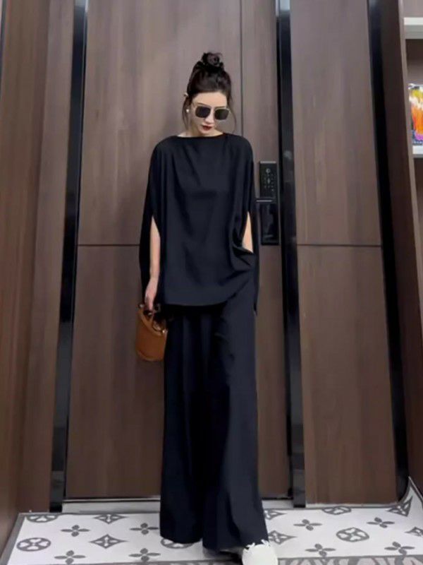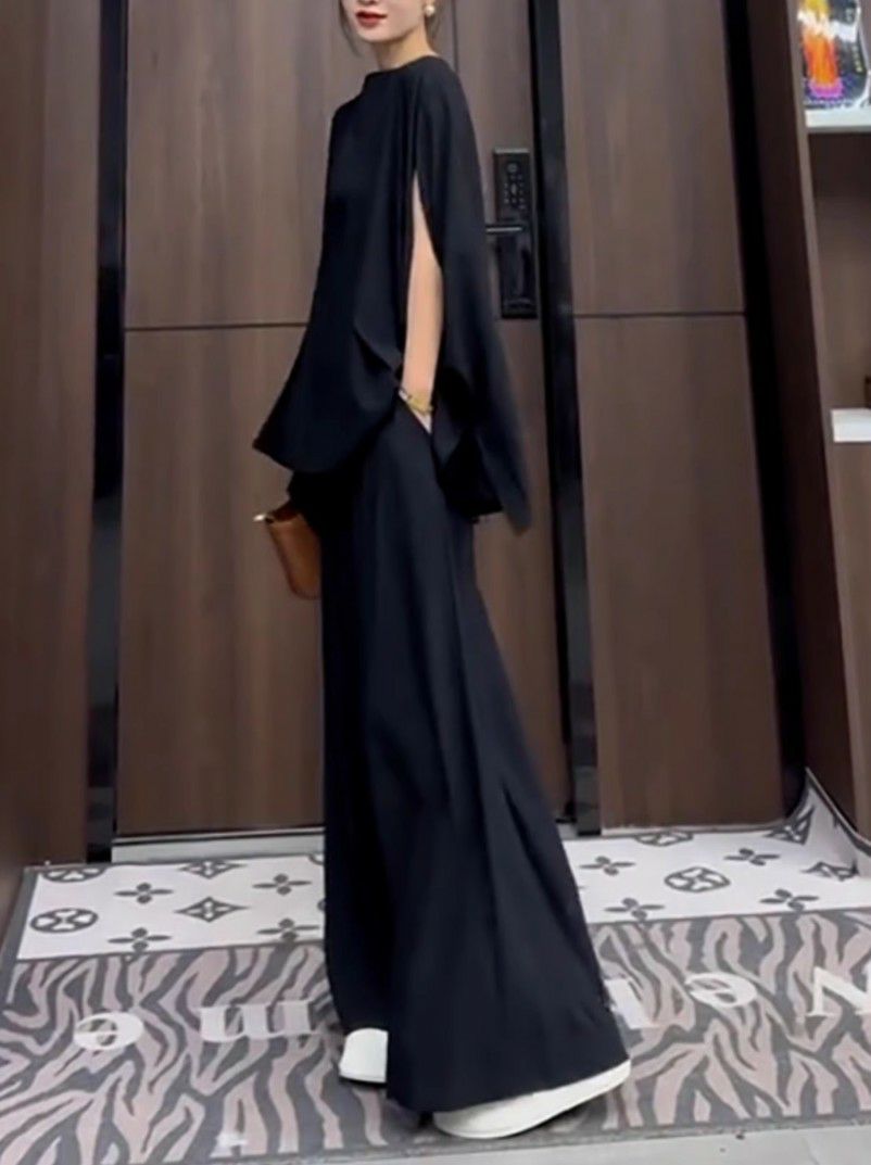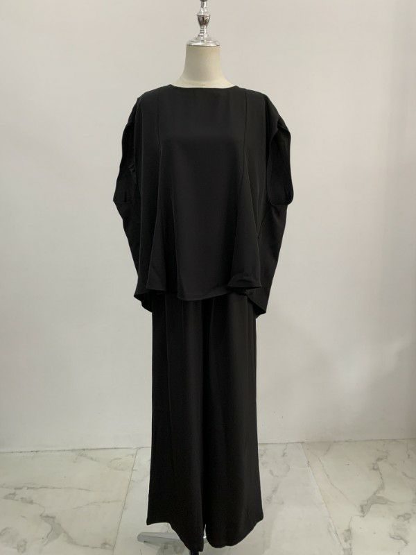 予約 ボートネック マントスリーブ ワイドパンツ セットアップ