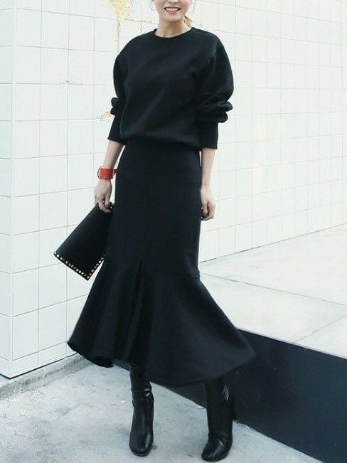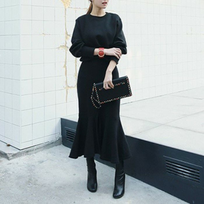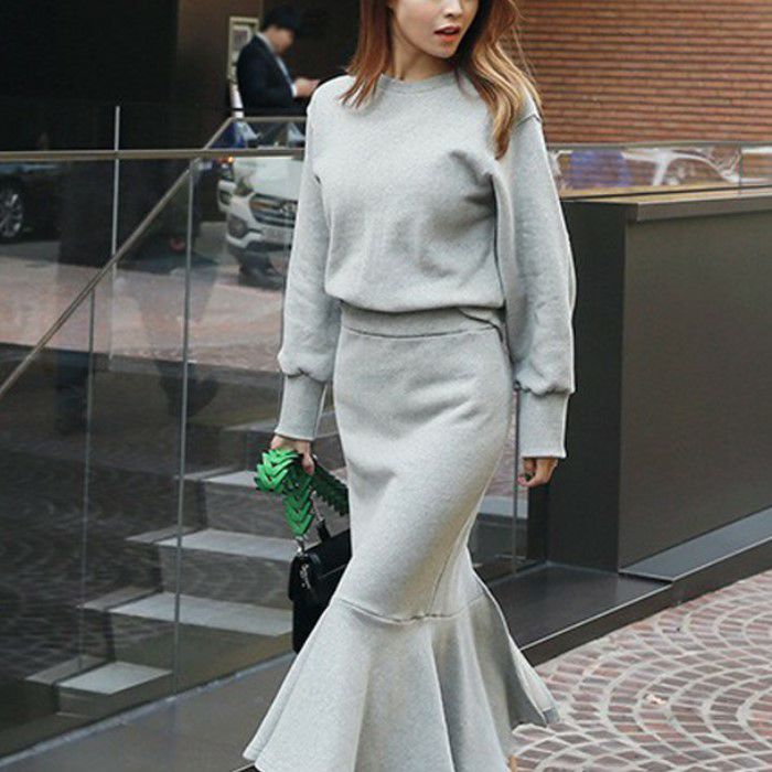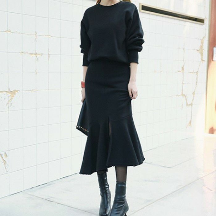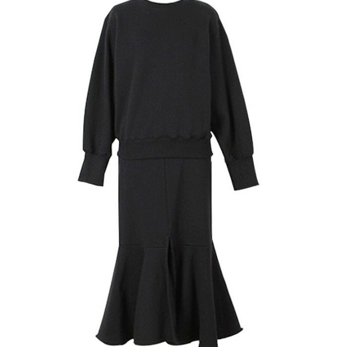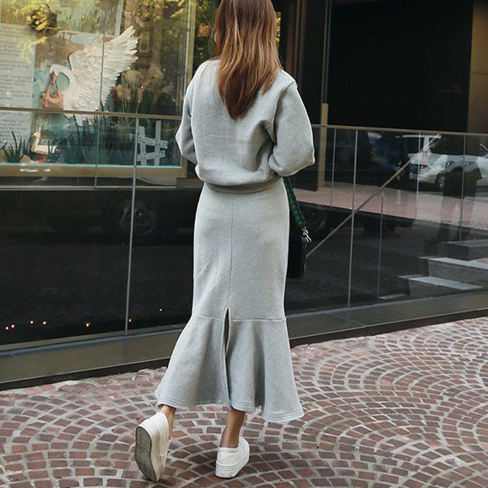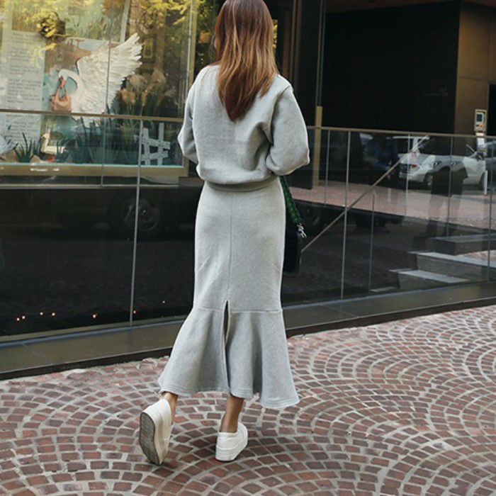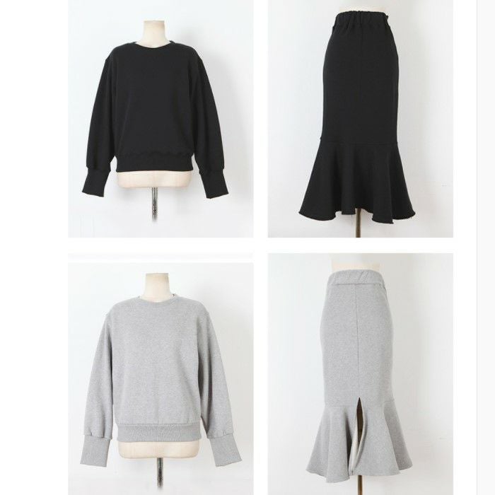予約 2color セットアップ スウェット + マーメイド ミディ丈 スカート