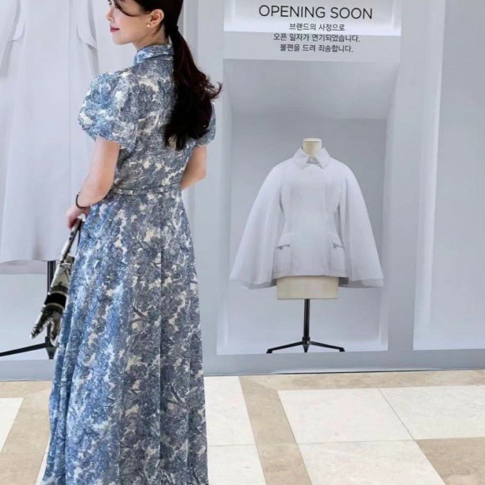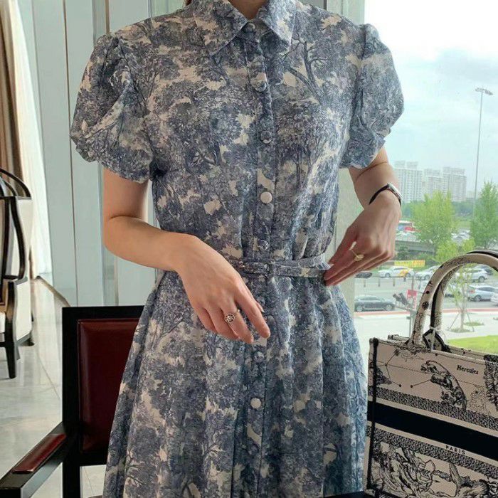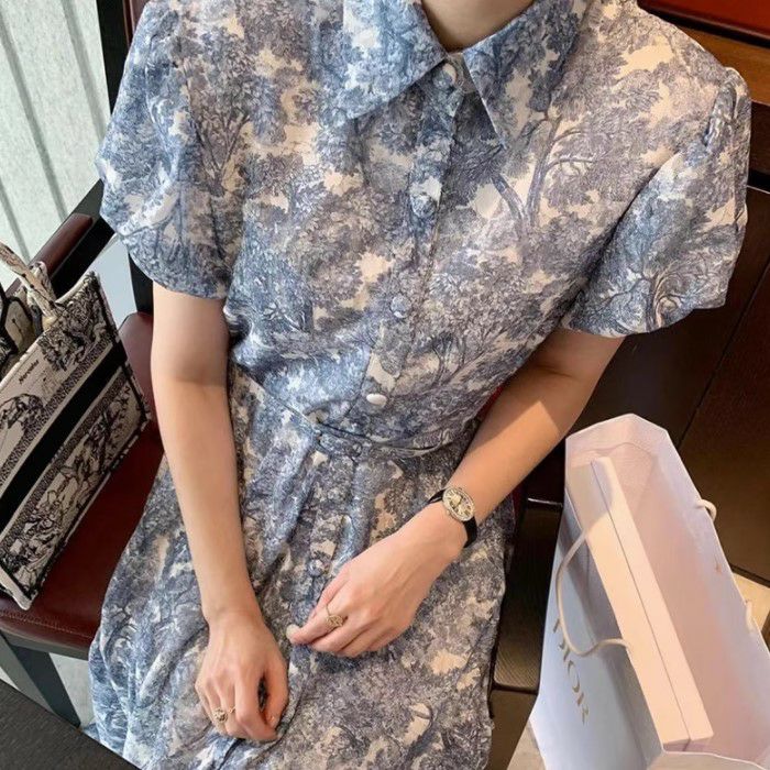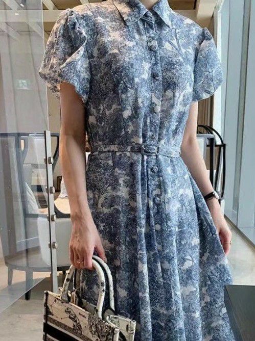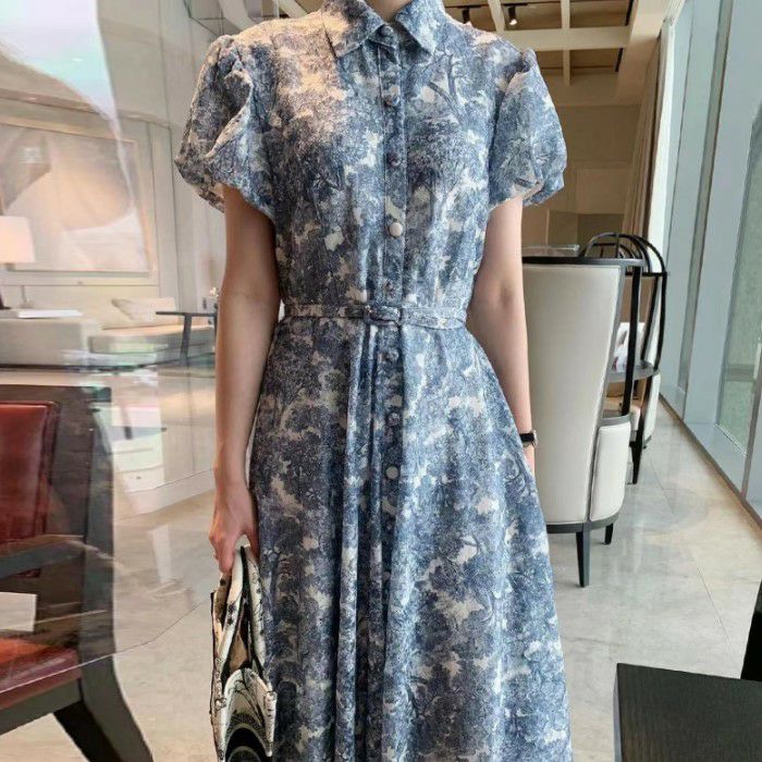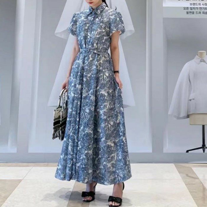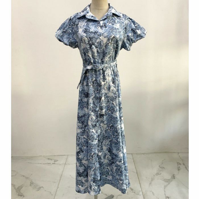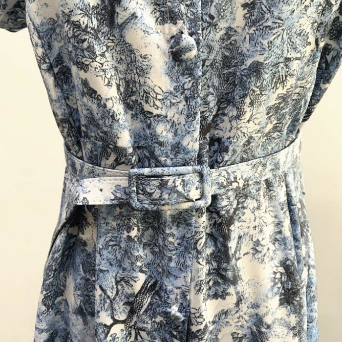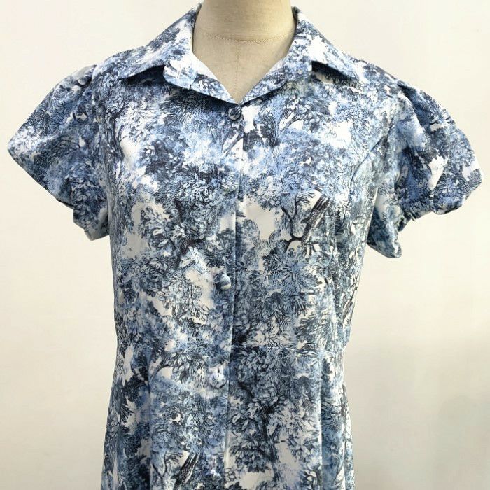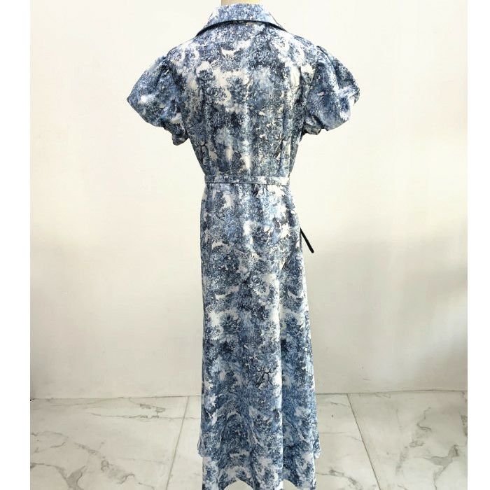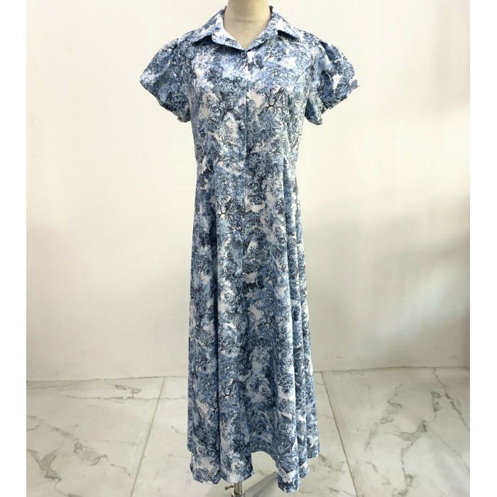 予約 ブルー フラワー ボタニカル ロング ワンピース