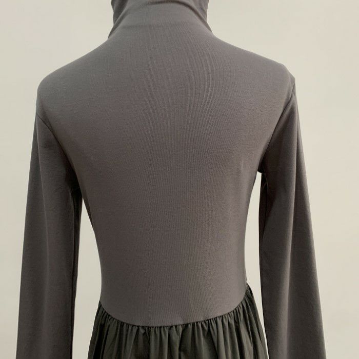 予約 2color ハイネック ドッキング ロング フレア ワンピース