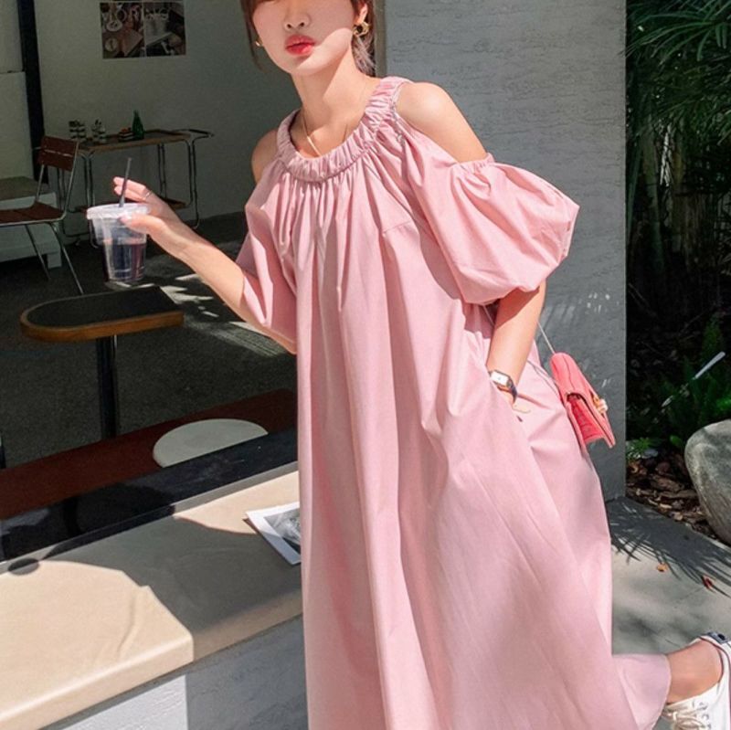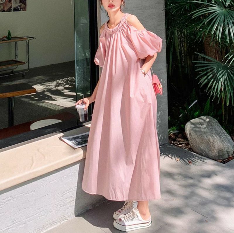 一部即納 2color オープンショルダー ロング ワンピース