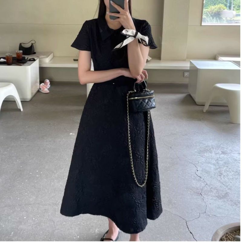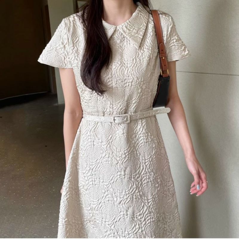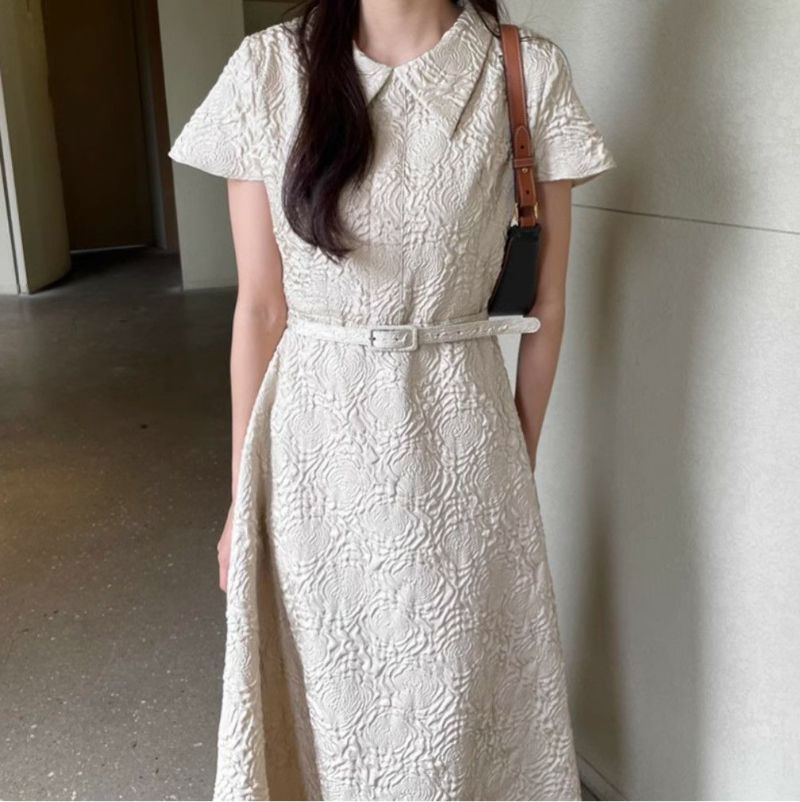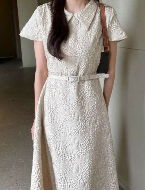 ジャガード生地のクラシカルなデザインが目を引くワンピース