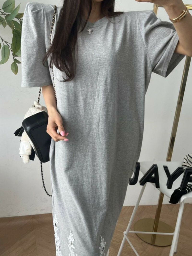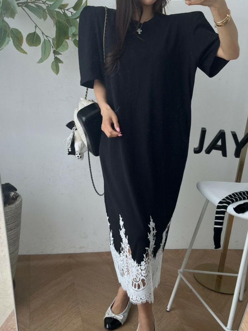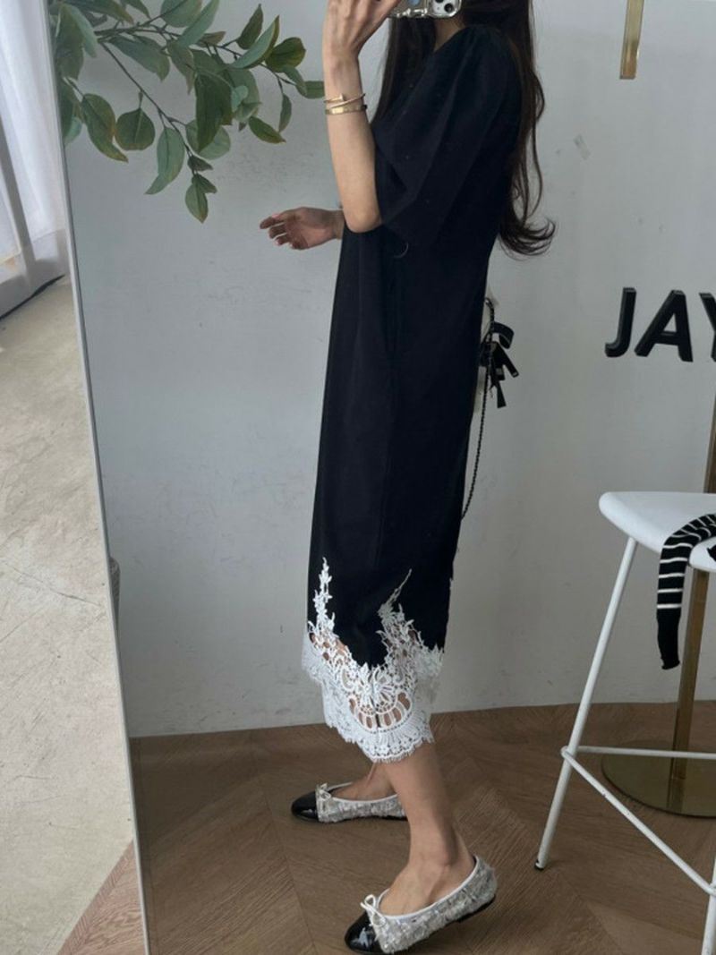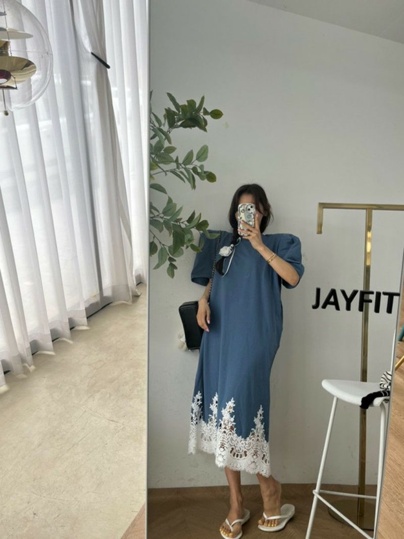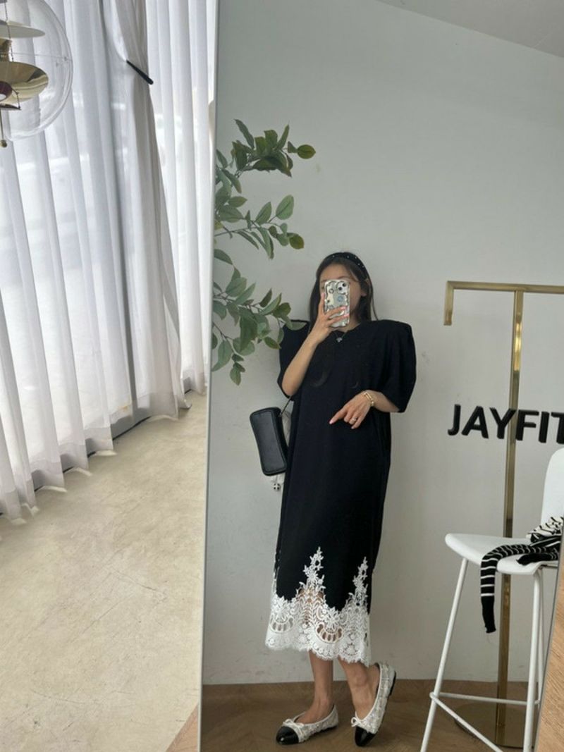 予約 4color レース ドッキング ハーフスリーブ ワンピース