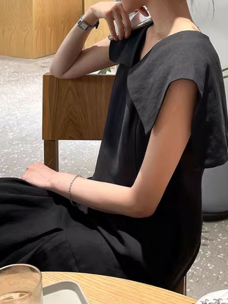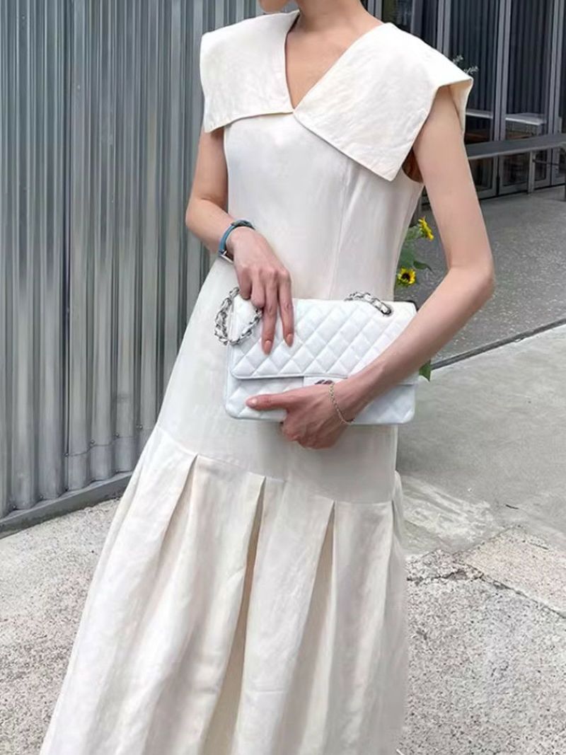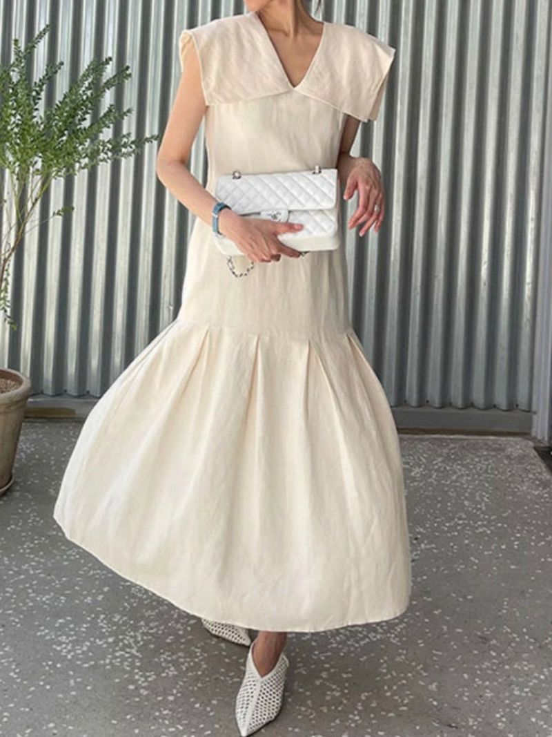 予約 2color セーラーカラー 裾フレア シャツ ワンピース
