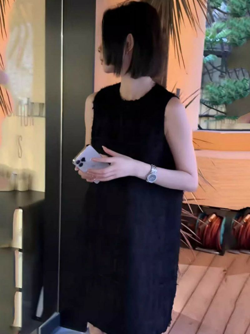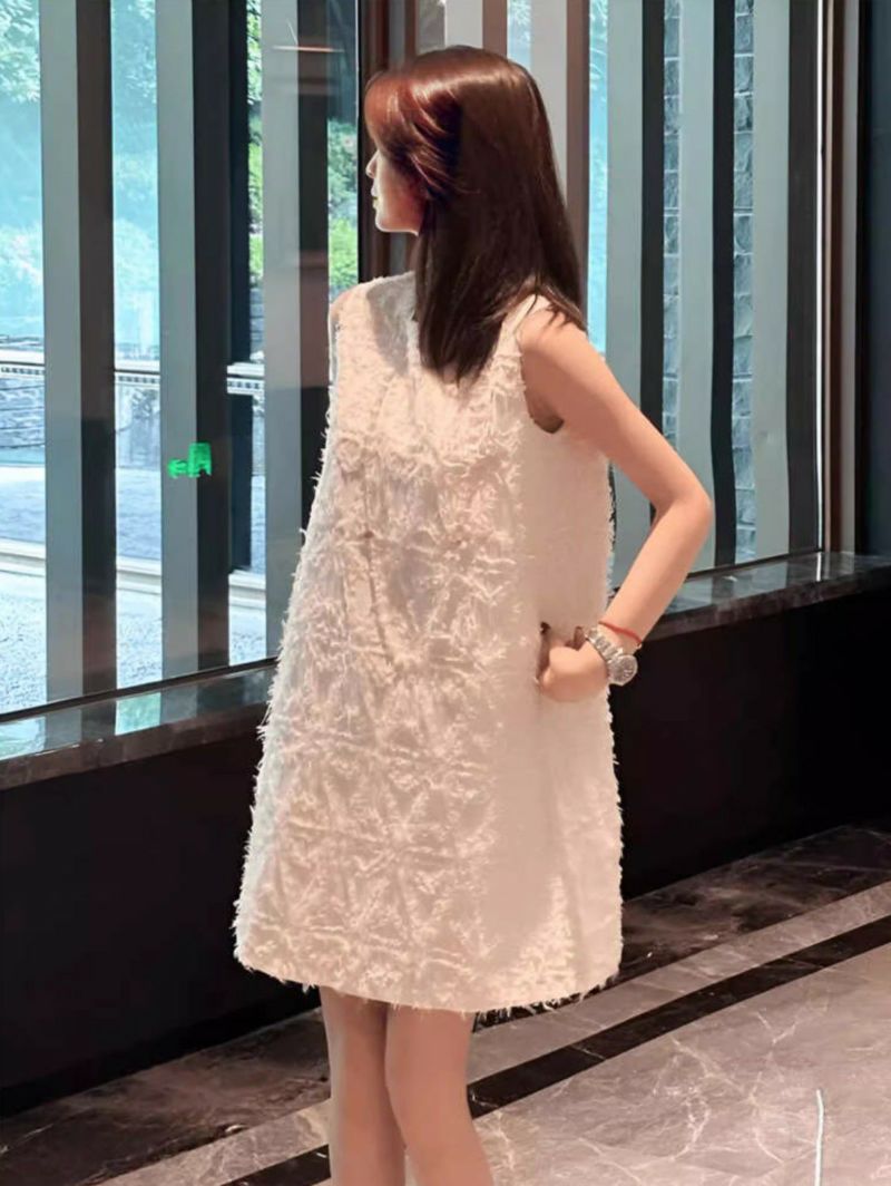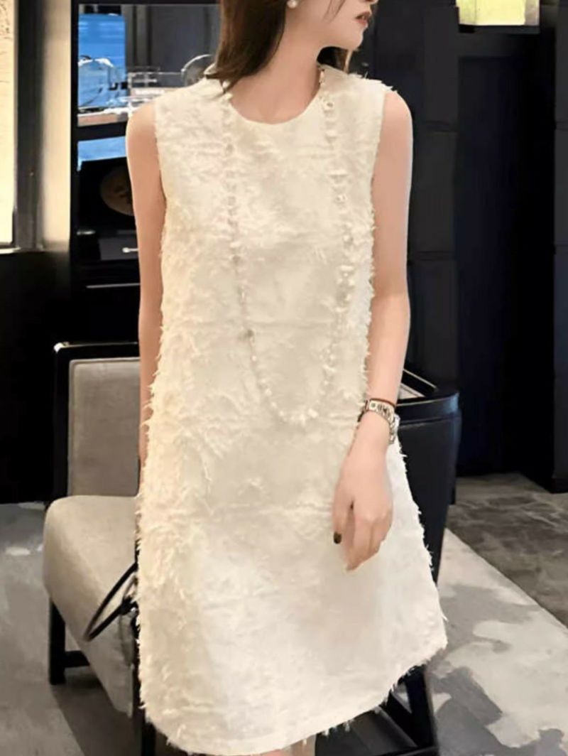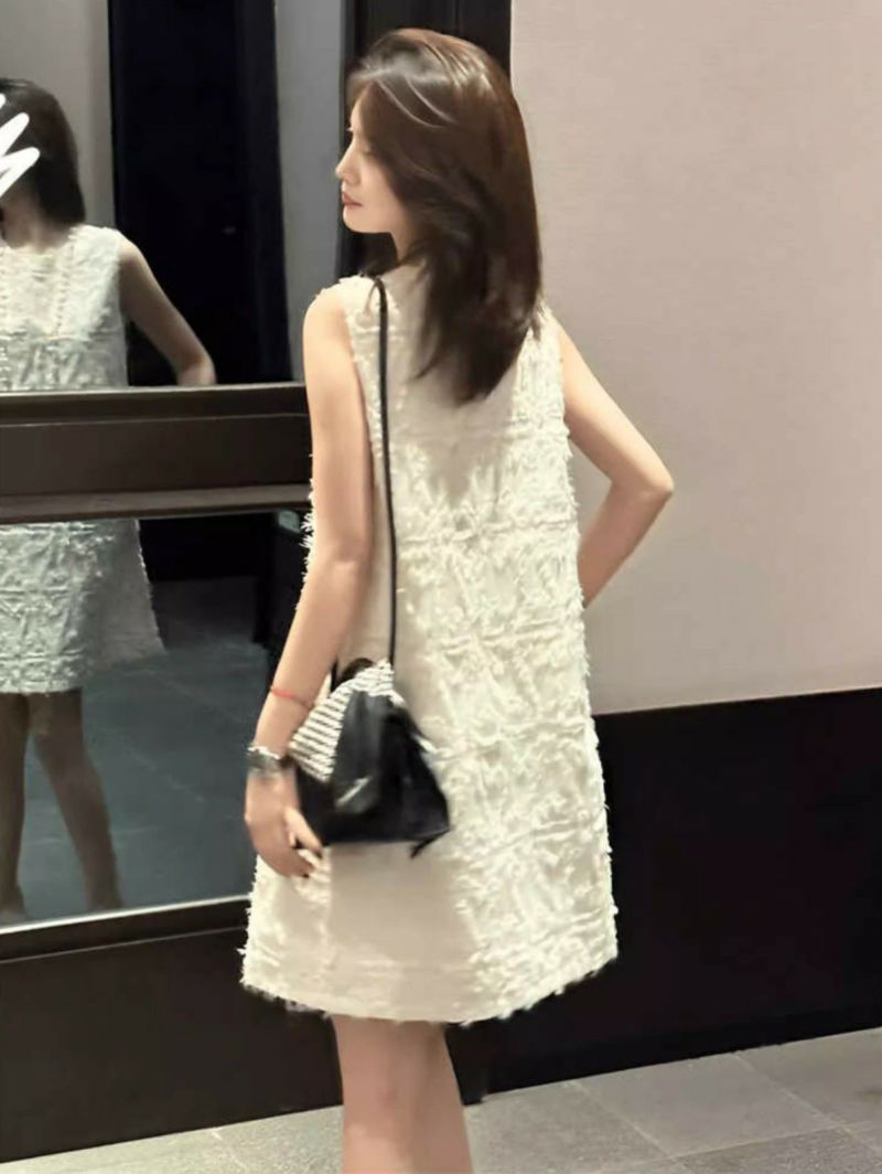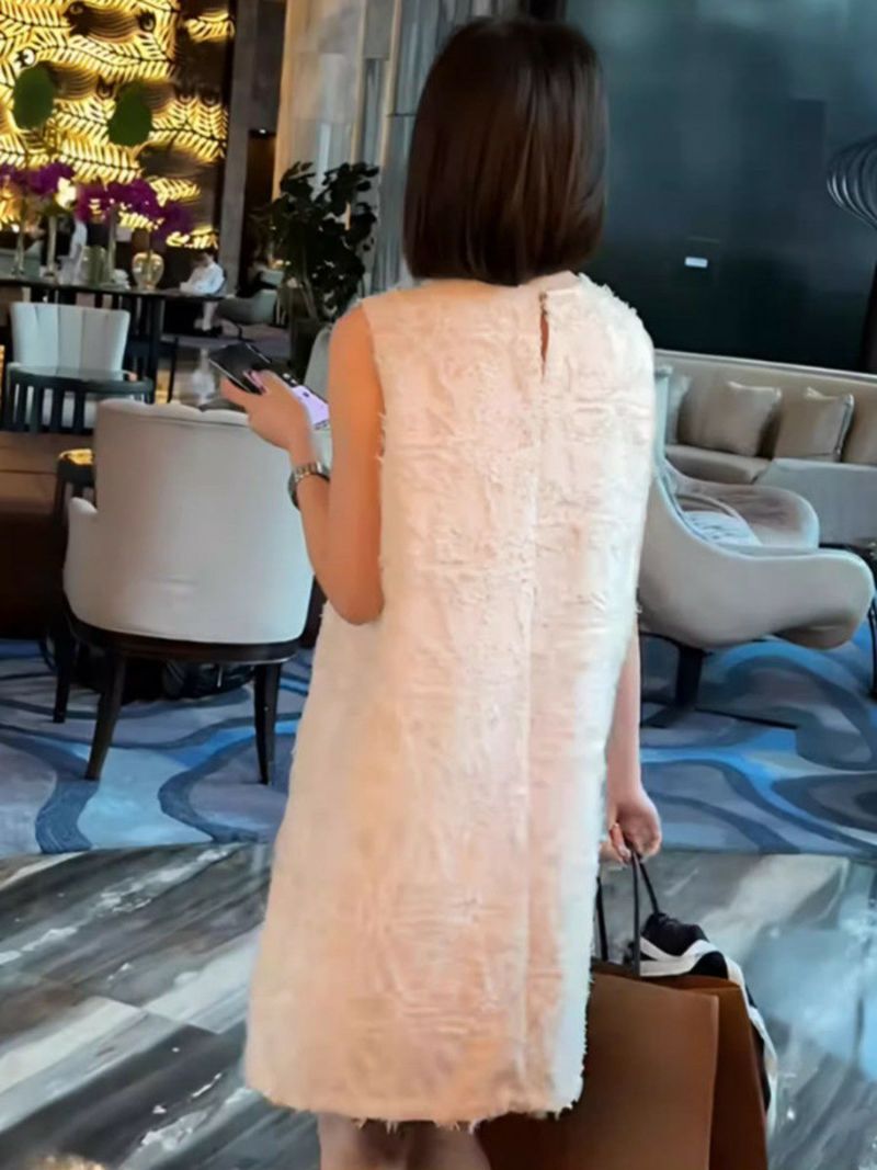 予約 2color フェザー ノースリーブ クルーネック ミニワンピース