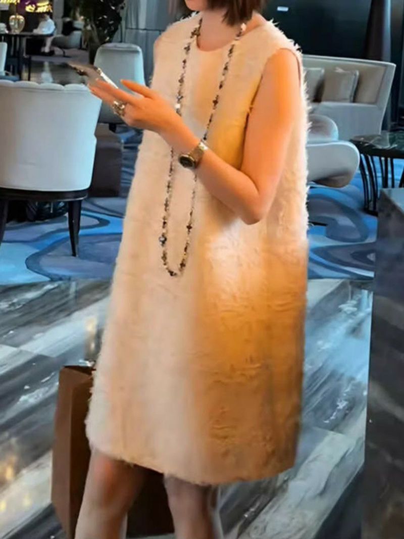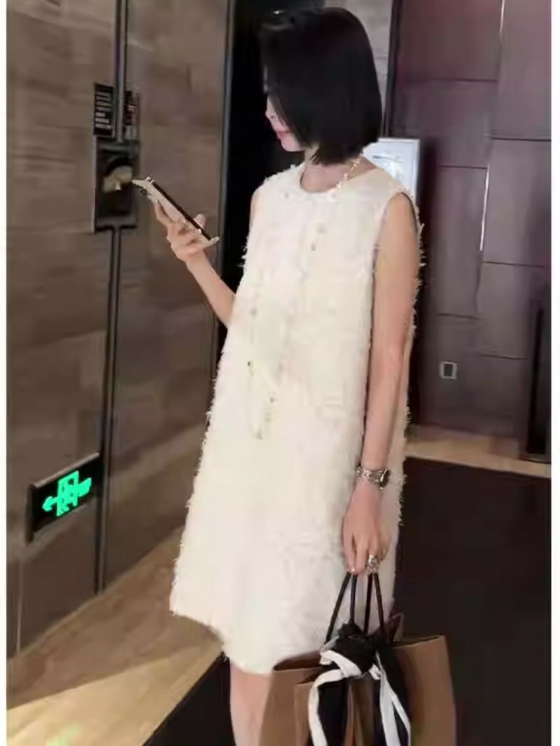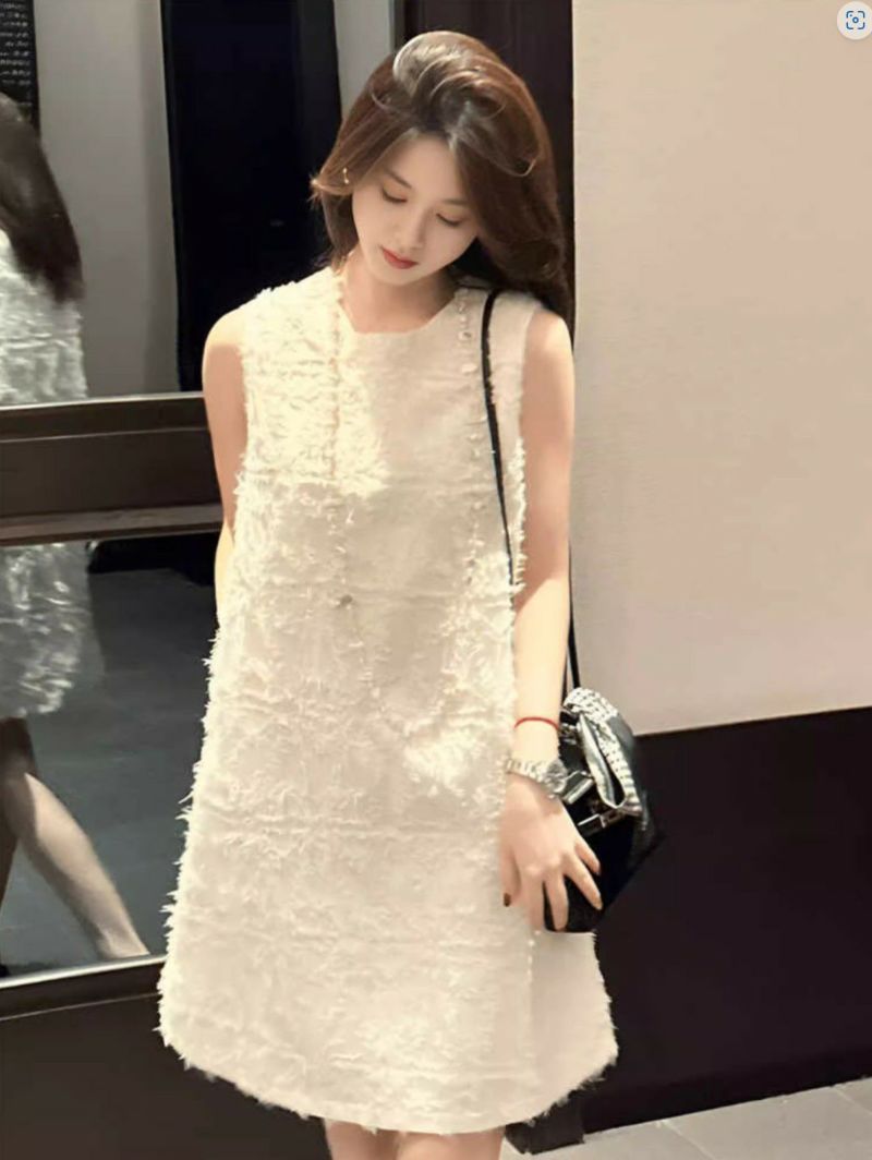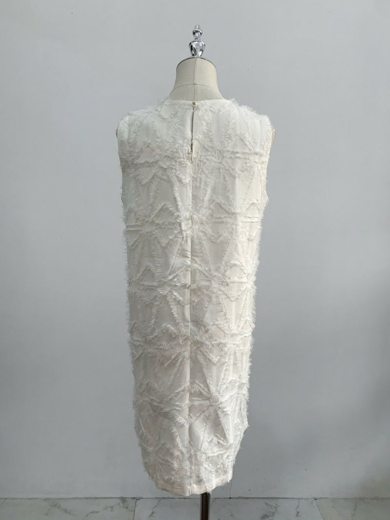 予約 2color フェザー ノースリーブ クルーネック ミニワンピース