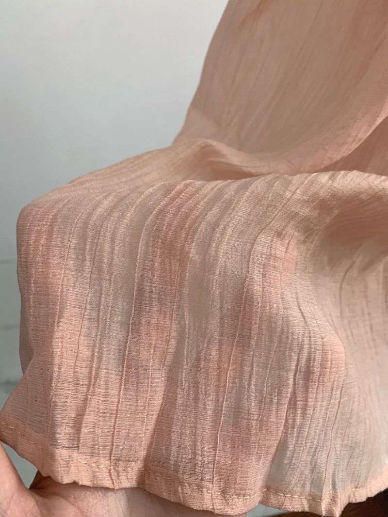 楊柳生地が清涼感があり、リゾートシーンでも着たい一枚です。