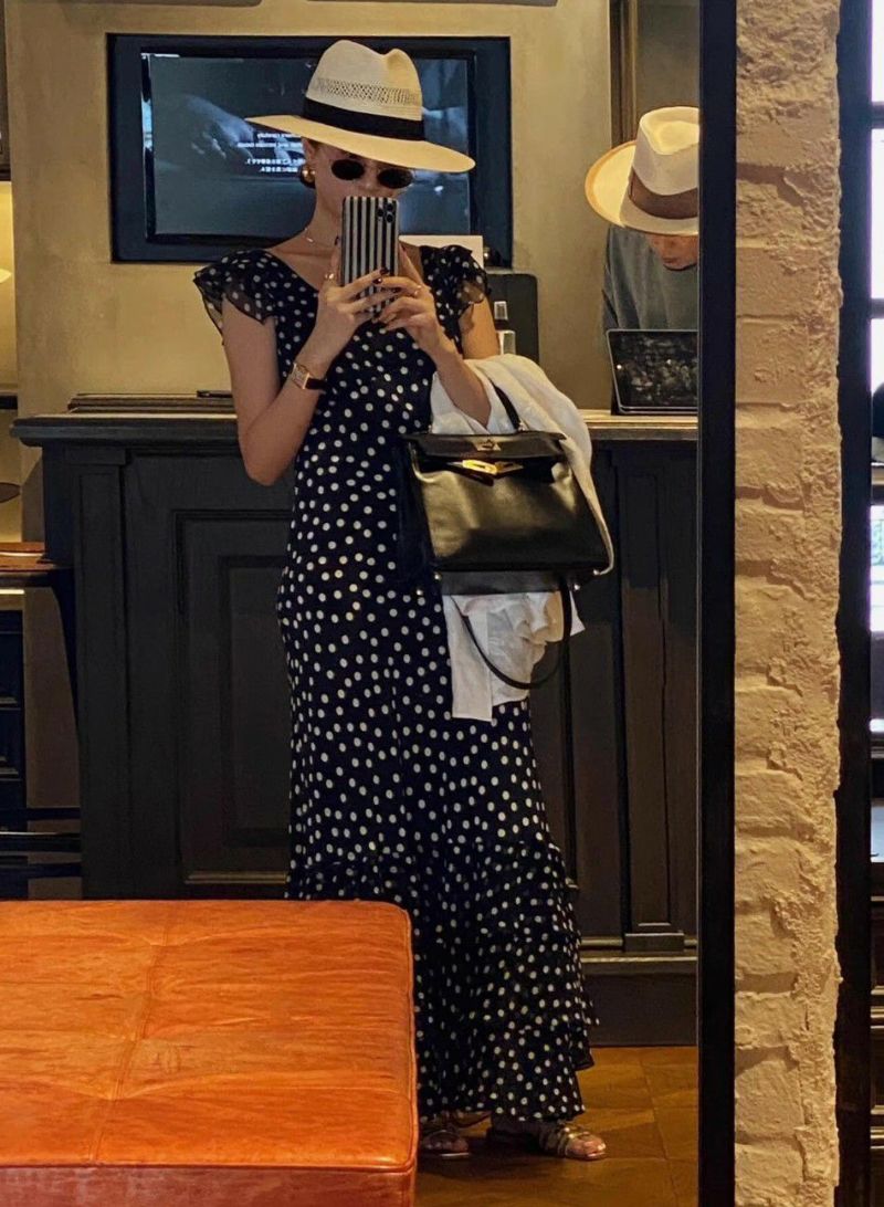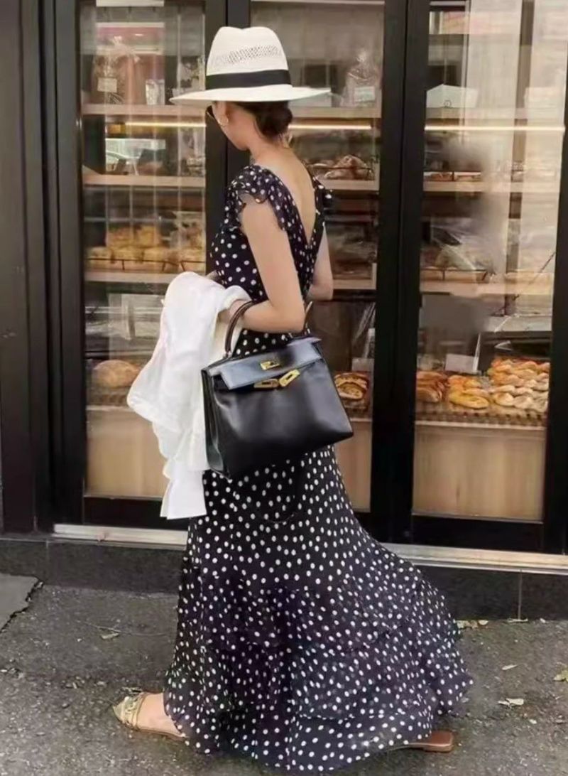 Dotが大人可愛いロング丈のシフォンワンピース