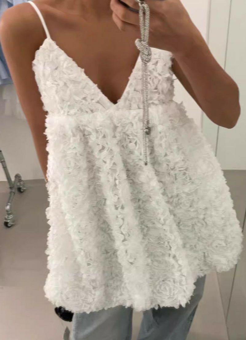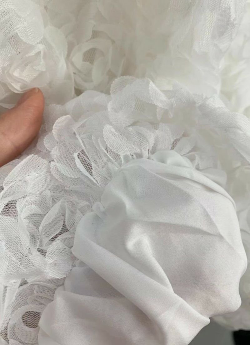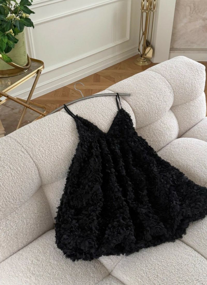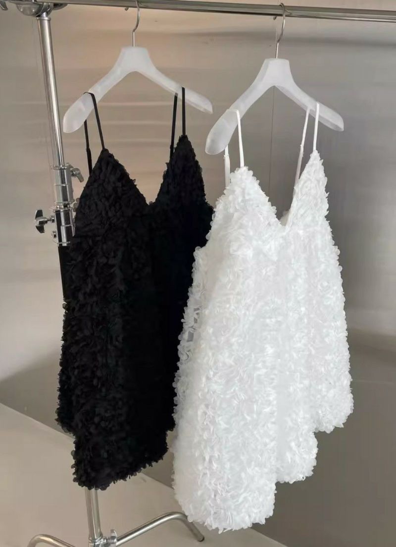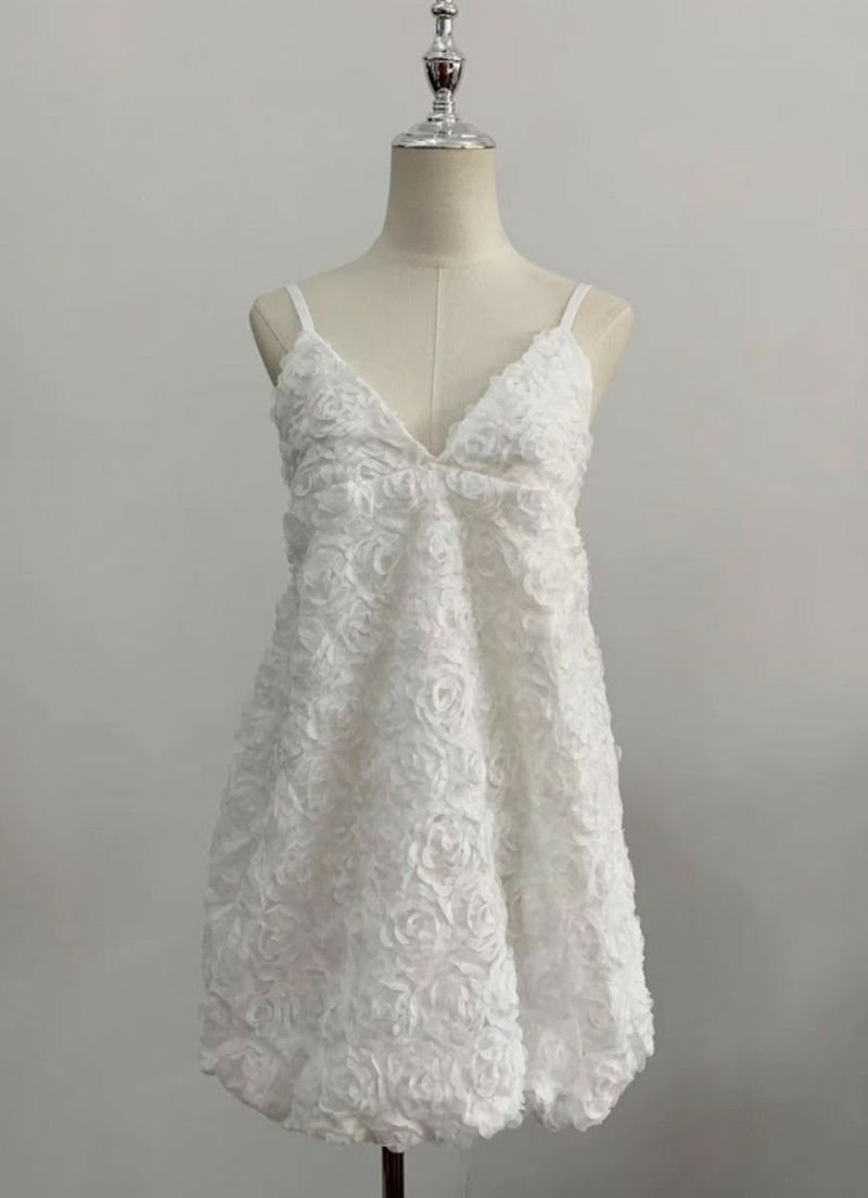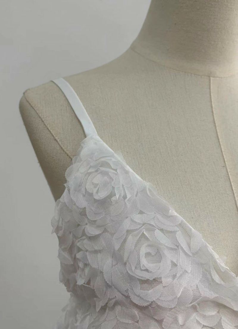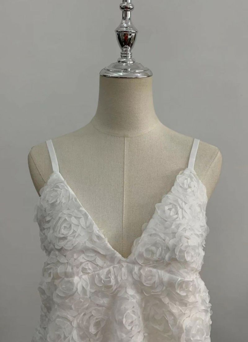チュール生地にフラワーがデザインされたキャミソールワンピース