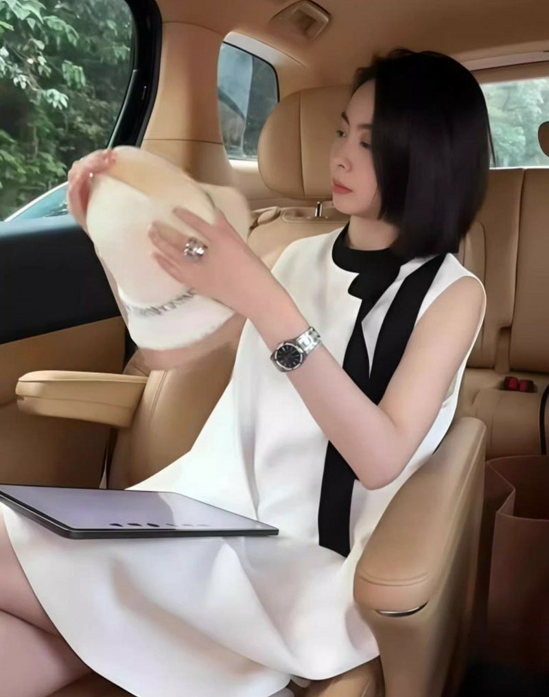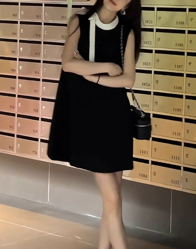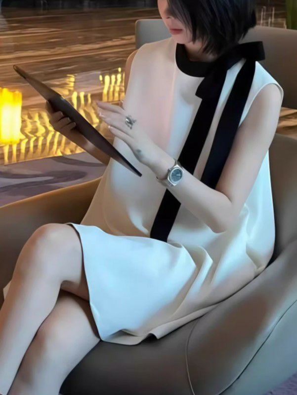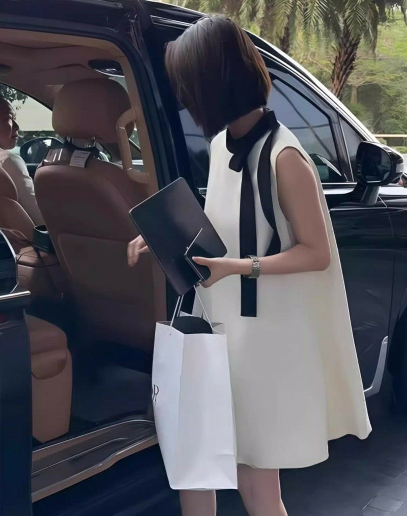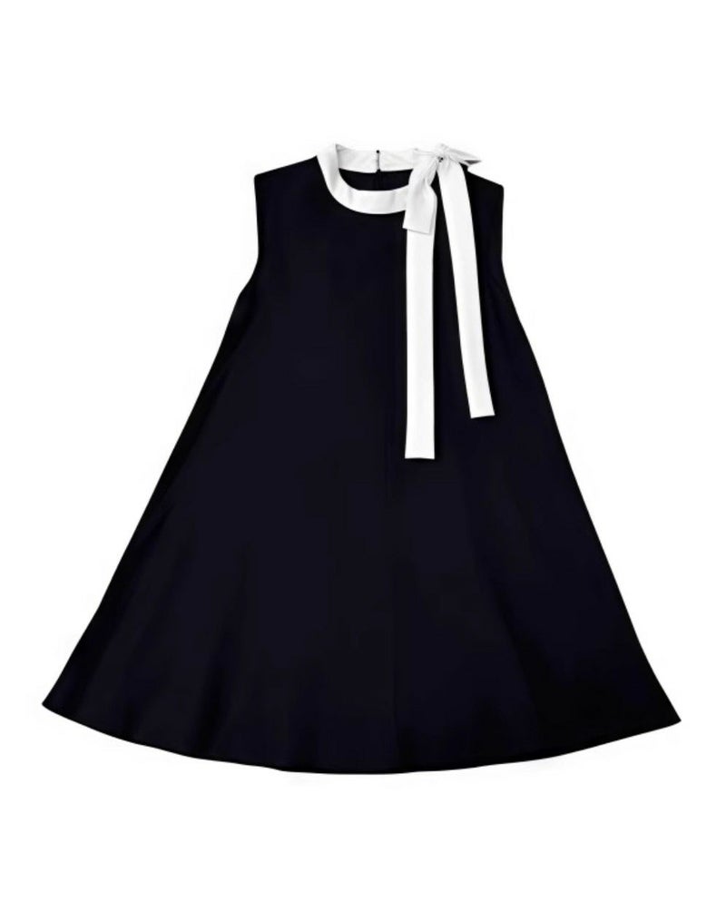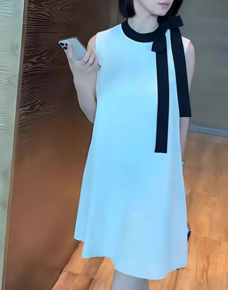首元の2カラーリボンが視線を惹きつける、上品かわいいAラインワンピース。