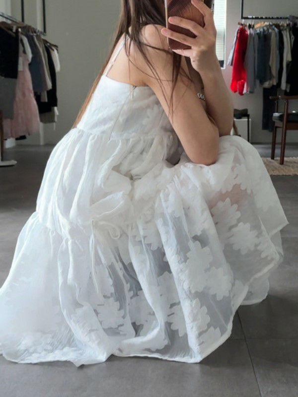 予約 2color Flower シアー ジャガード キャミソール ミニ ワンピース