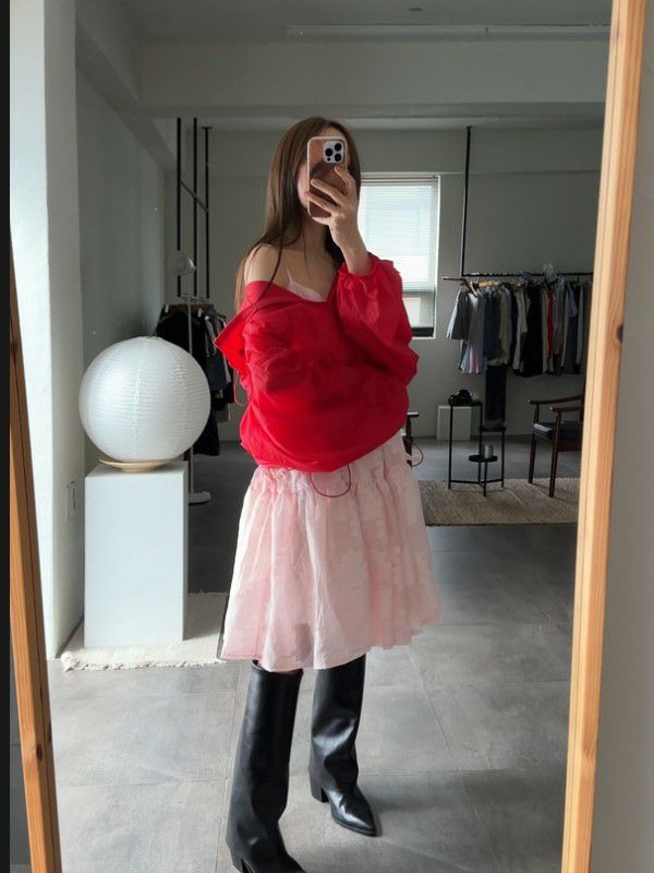 軽やかなシフォン素材が動きに合わせて美しく揺れ、フェミニンで華やかな印象を与えます。