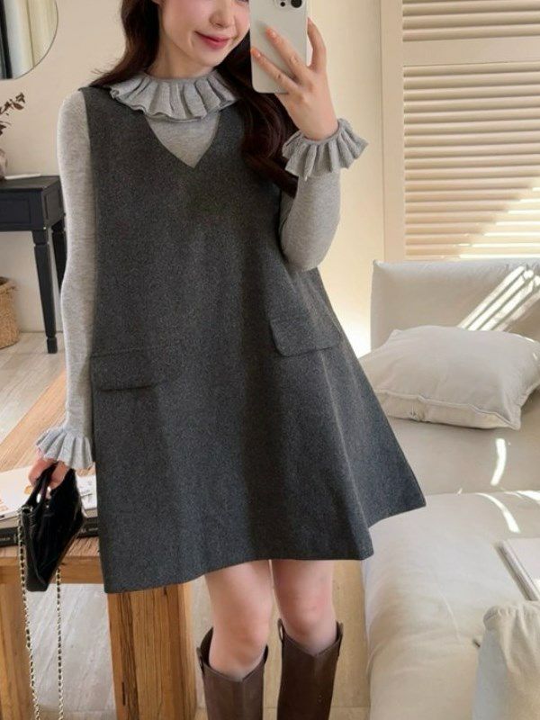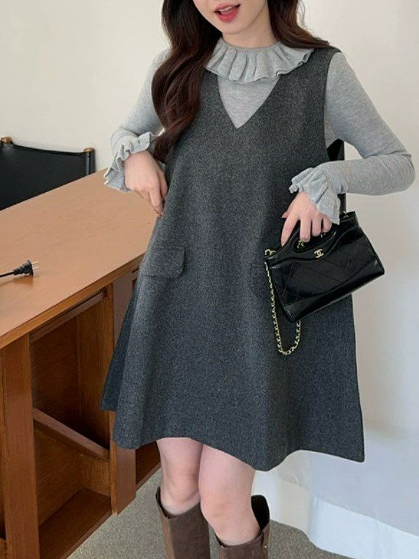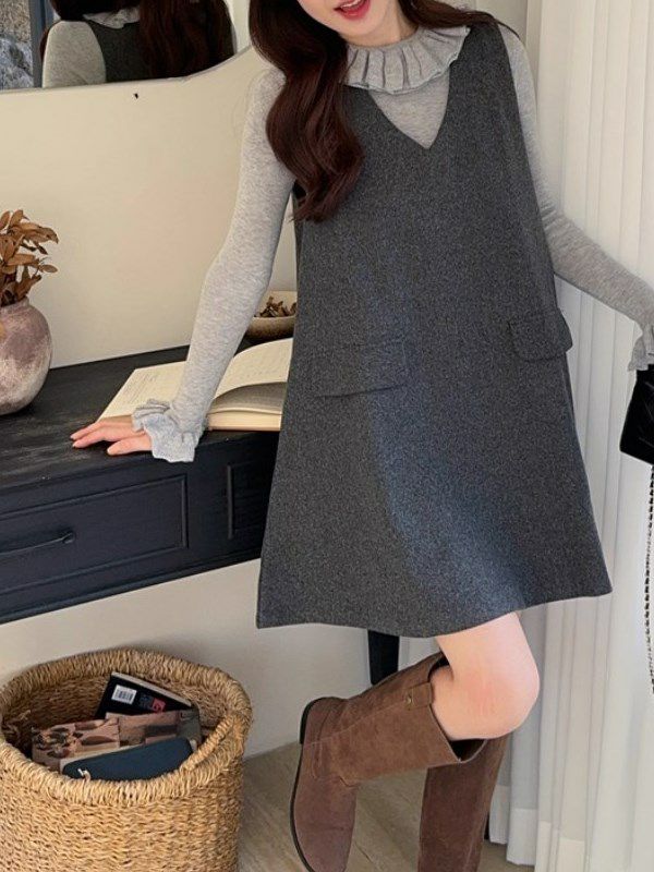 すとんと落ちるAラインが、シンプルながら存在感のあるシルエットを描くジャンパースカート ワンピース