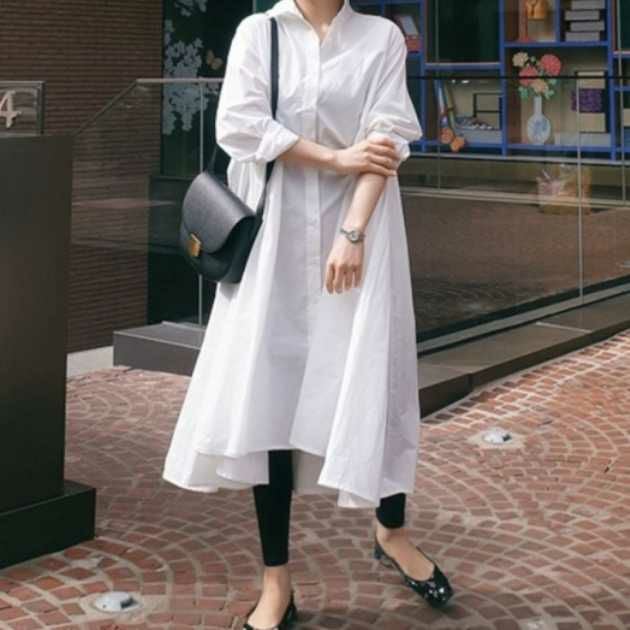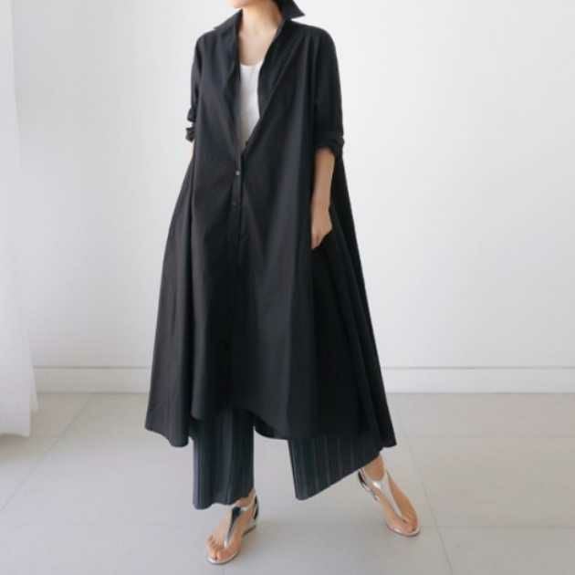 予約 ミモレ丈 シャツ ワンピース フレアー