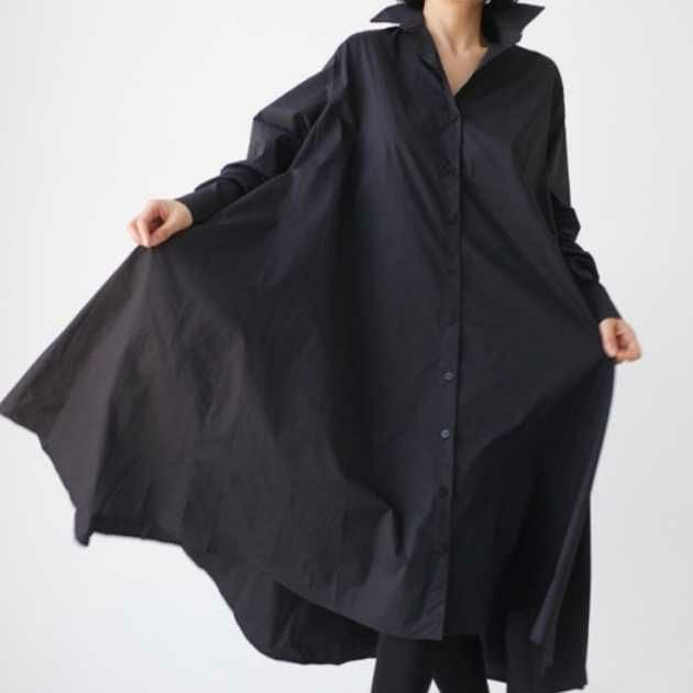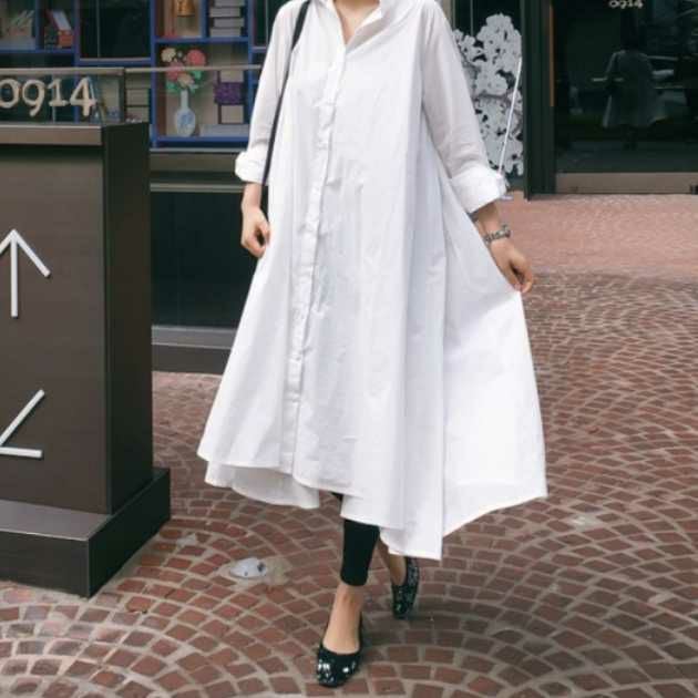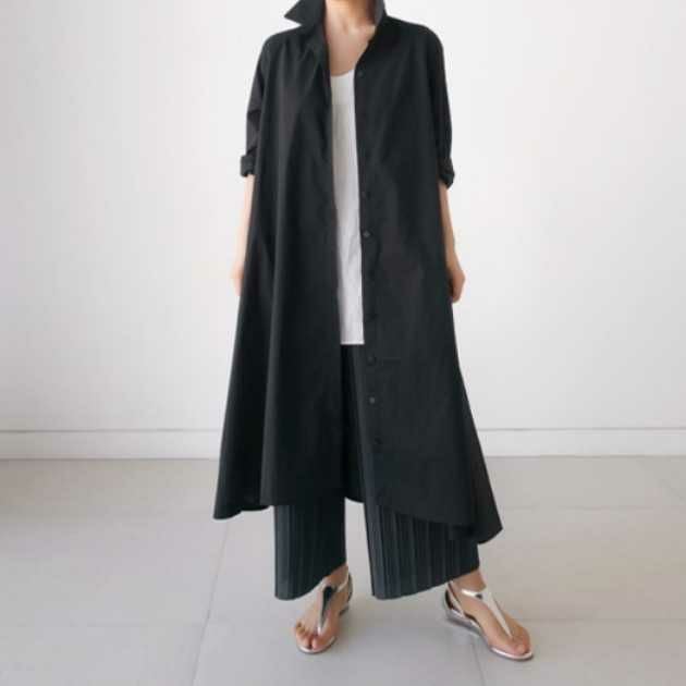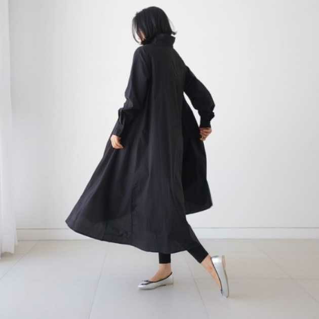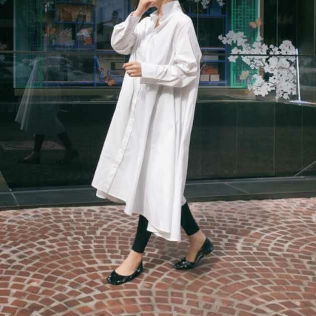 生地が贅沢に使われたボリューム感のあるシャツワンピース