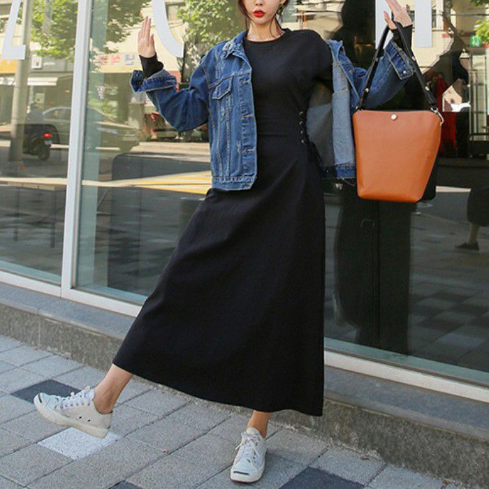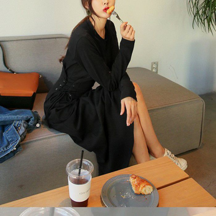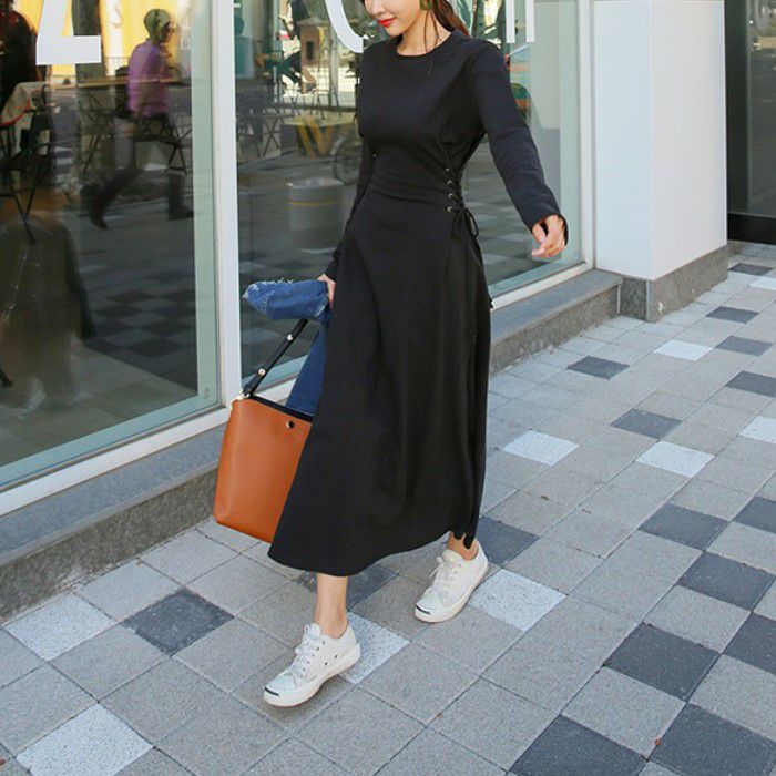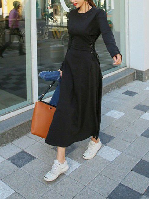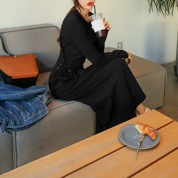 予約 レースアップ 編み上げ ロング 長袖 ワンピース