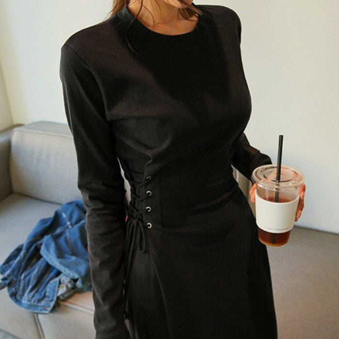 サイドのレースアップデザインが素敵なワンピース。