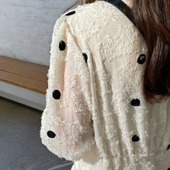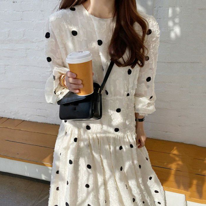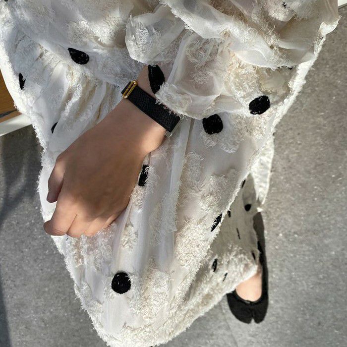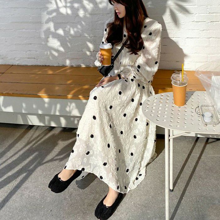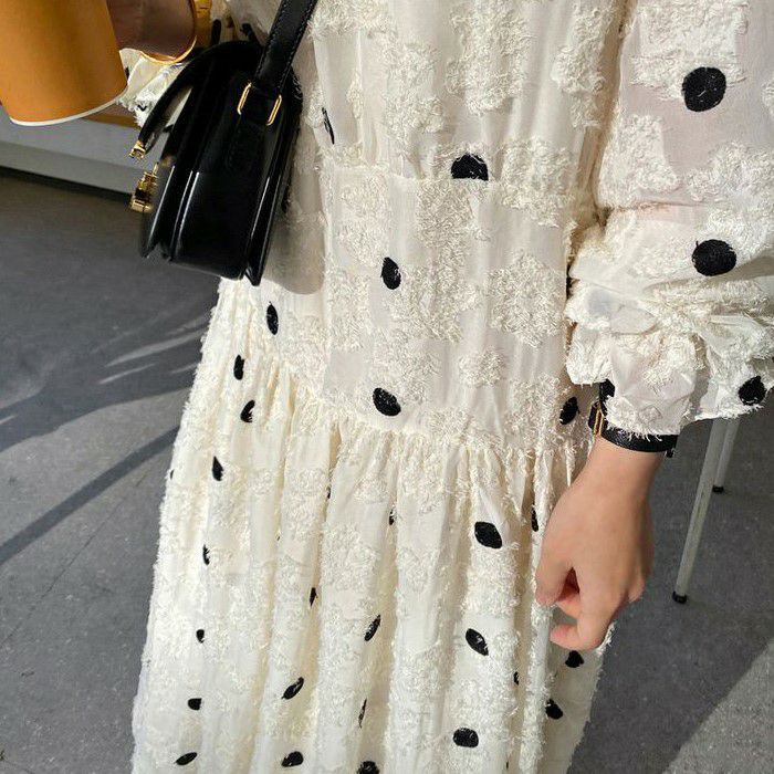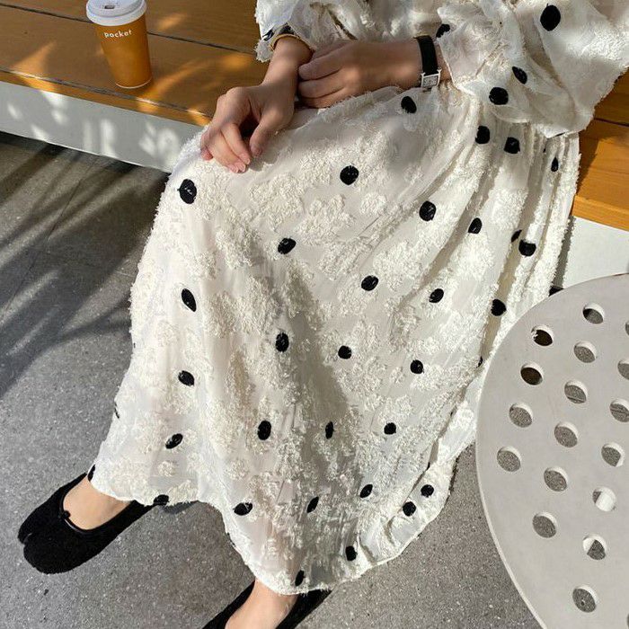 予約 ドット レース ロング ワンピース