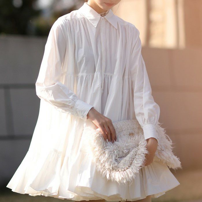 予約2color ティアード ボリューム シャツ ワンピース