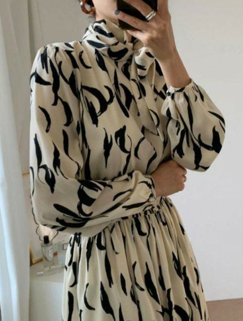 予約 3color ロング丈 バイカラー ボウタイ ワンピース