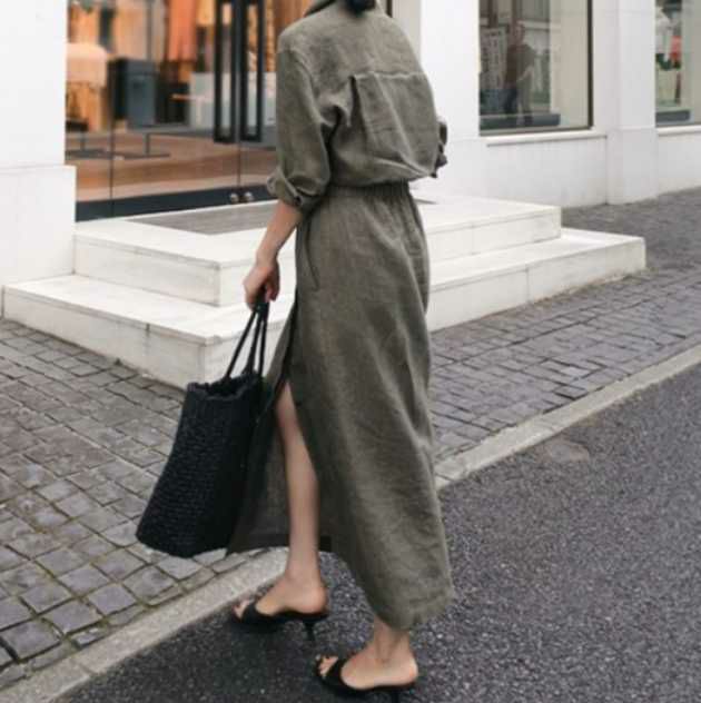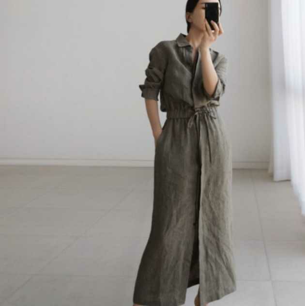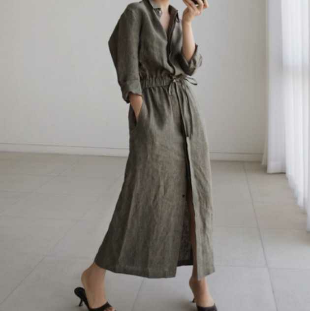 予約 Aライン ロング シャツワンピース