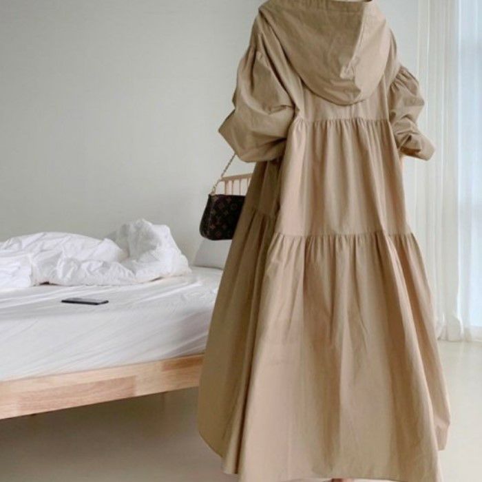 予約* 3color ワンピース Aライン フード ロング