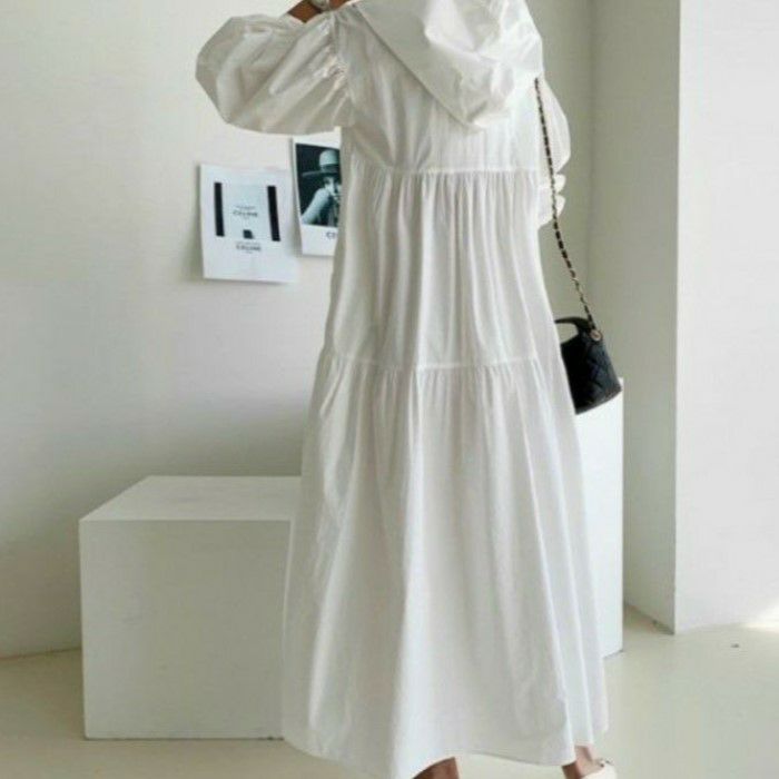 予約 2color シャツ ボリュームスリーブ マキシ ワンピース
