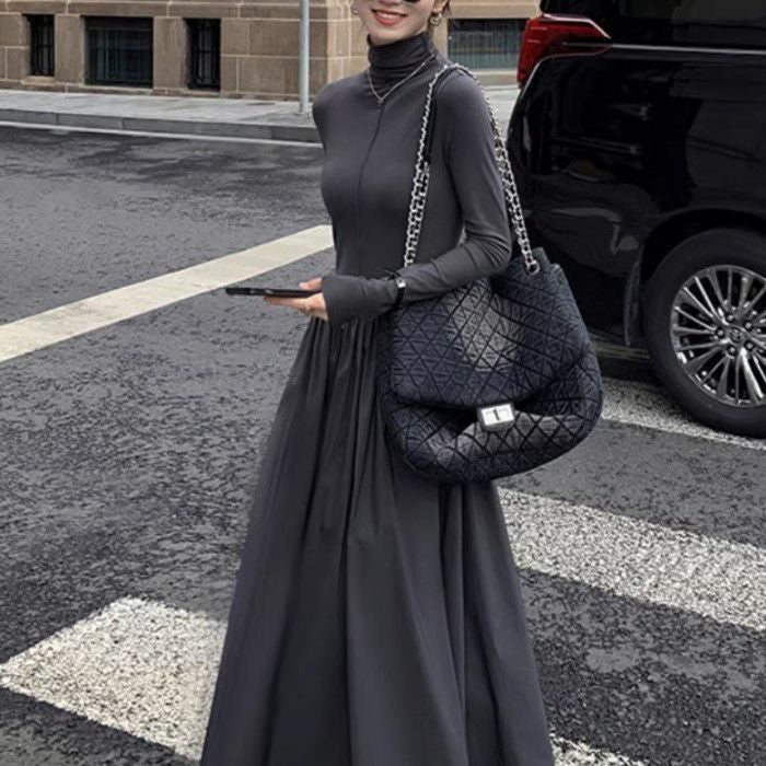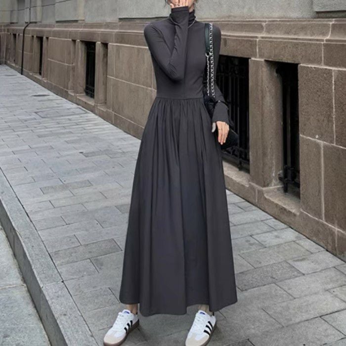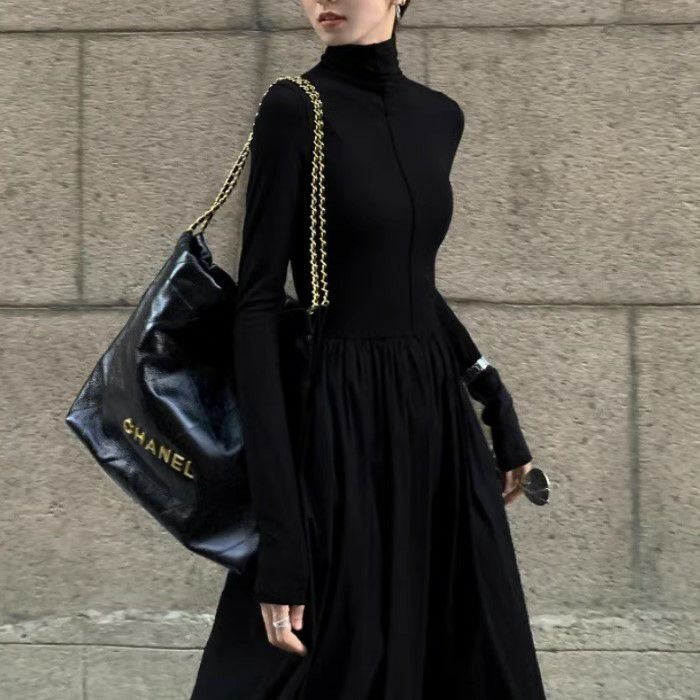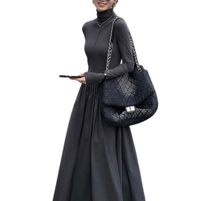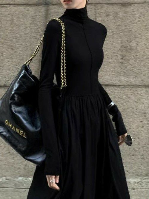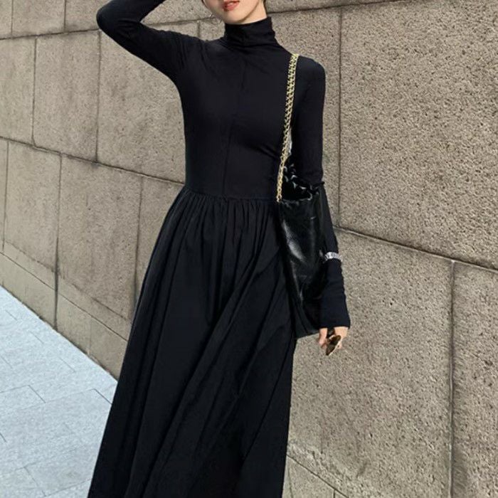 予約 2color ハイネック ドッキング ロング フレア ワンピース