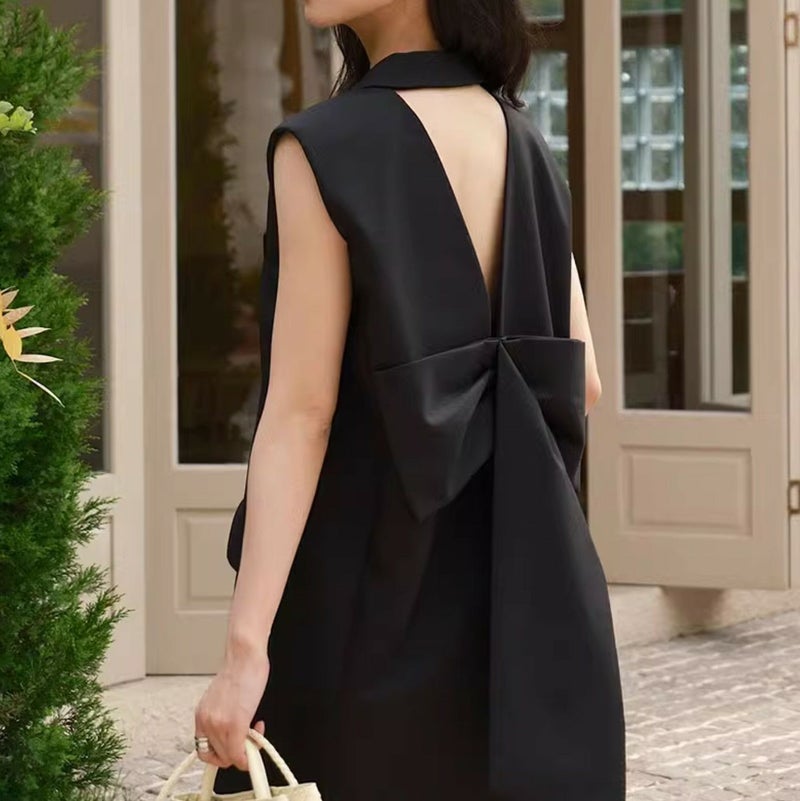 予約 2color バック オープン テーラード ワンピース