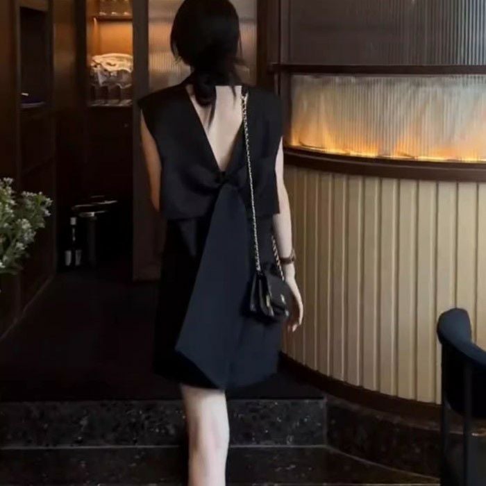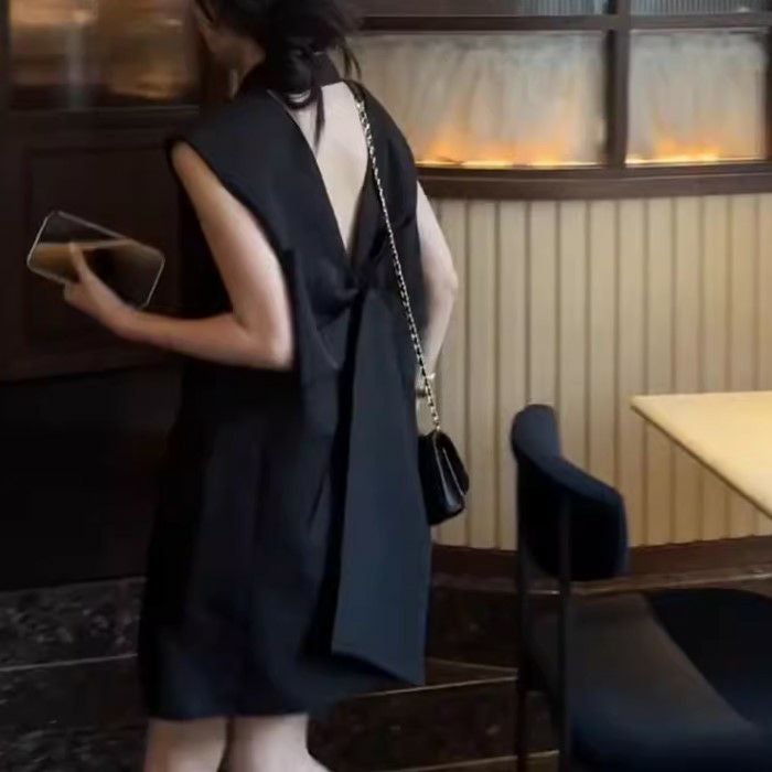 バックオープンが印象的なミニワンピース