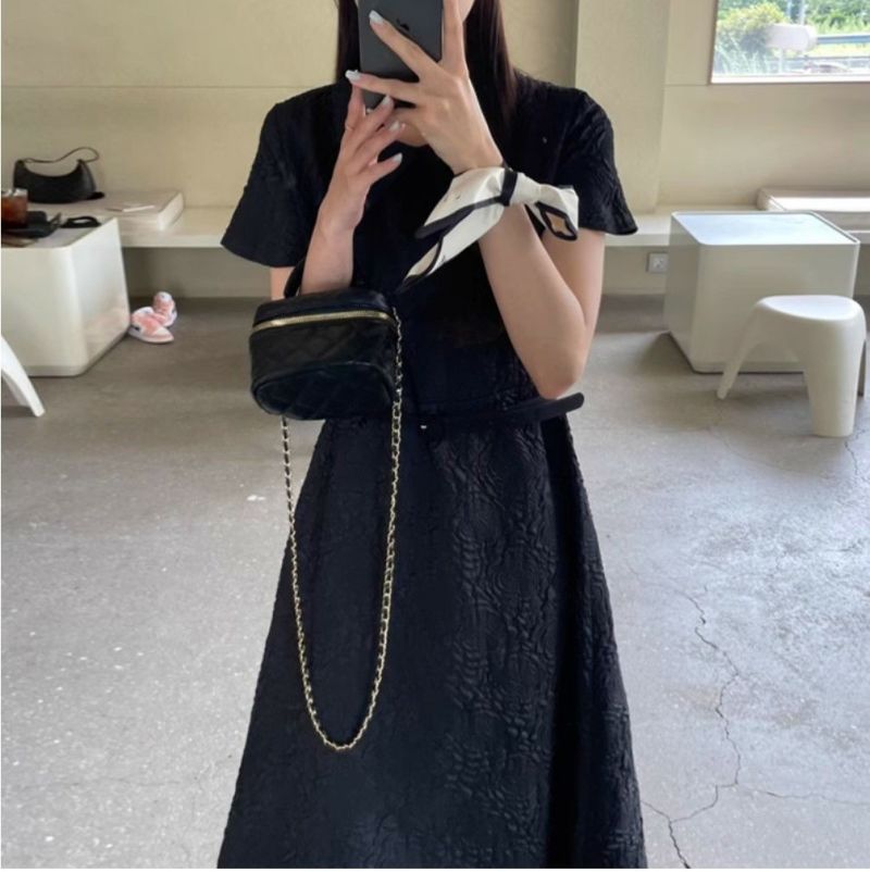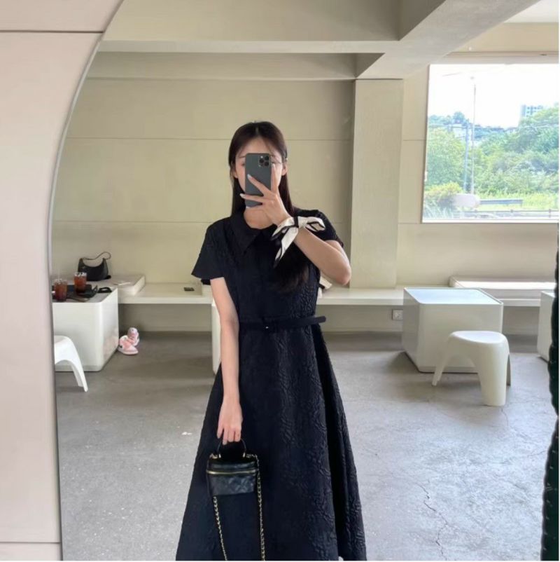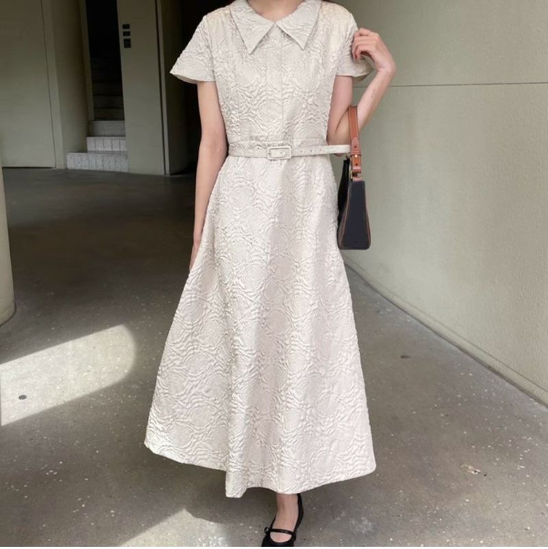 ジャガード生地のクラシカルなデザインが目を引くワンピース