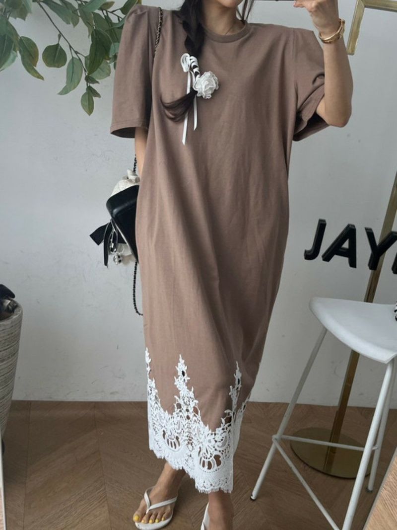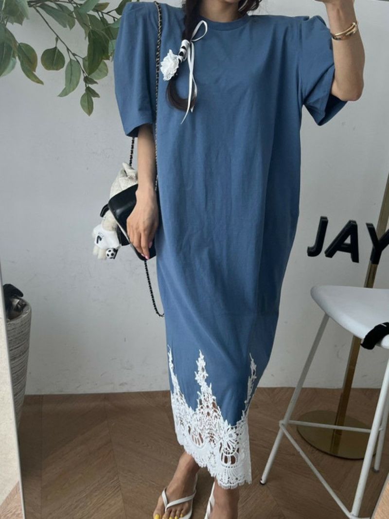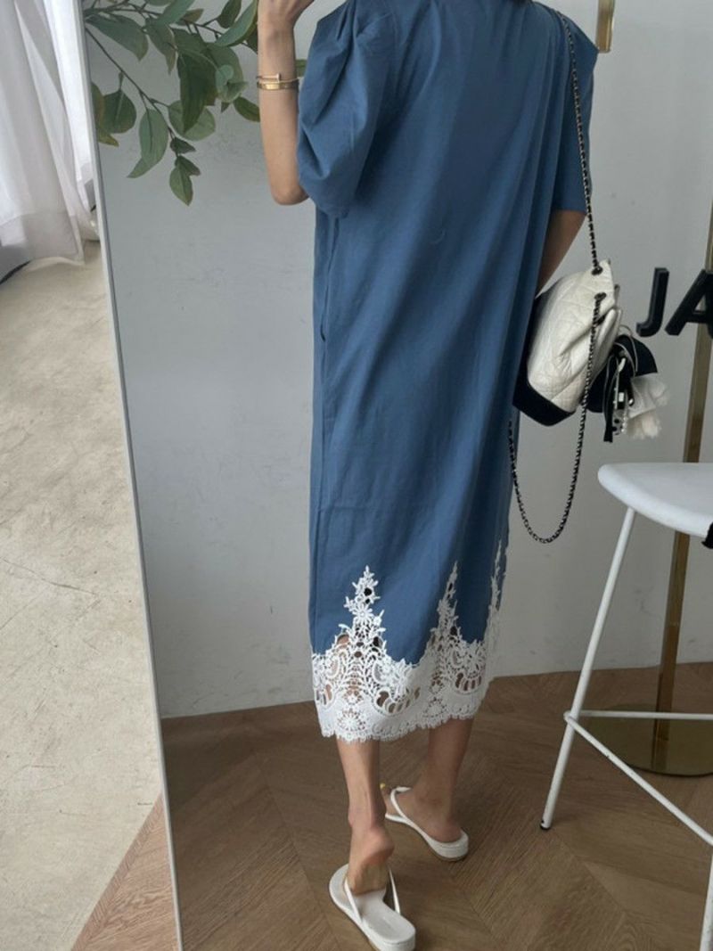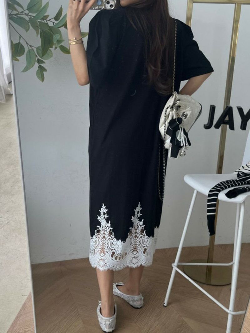予約 4color レース ドッキング ハーフスリーブ ワンピース