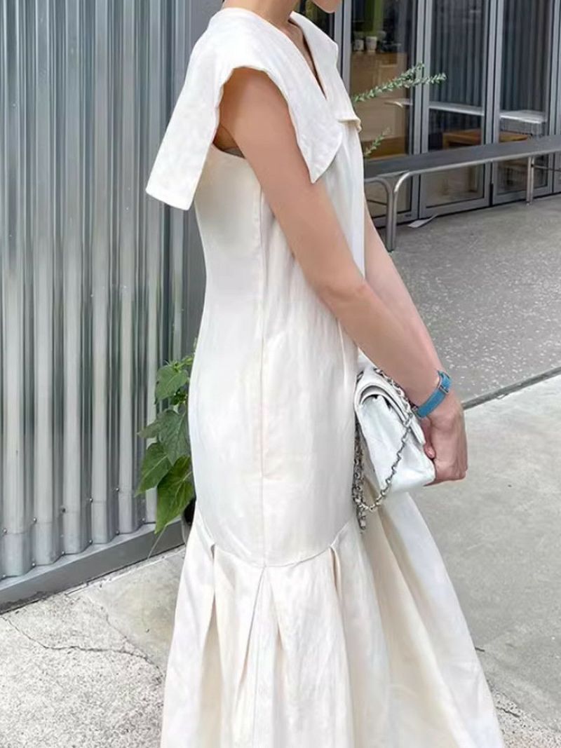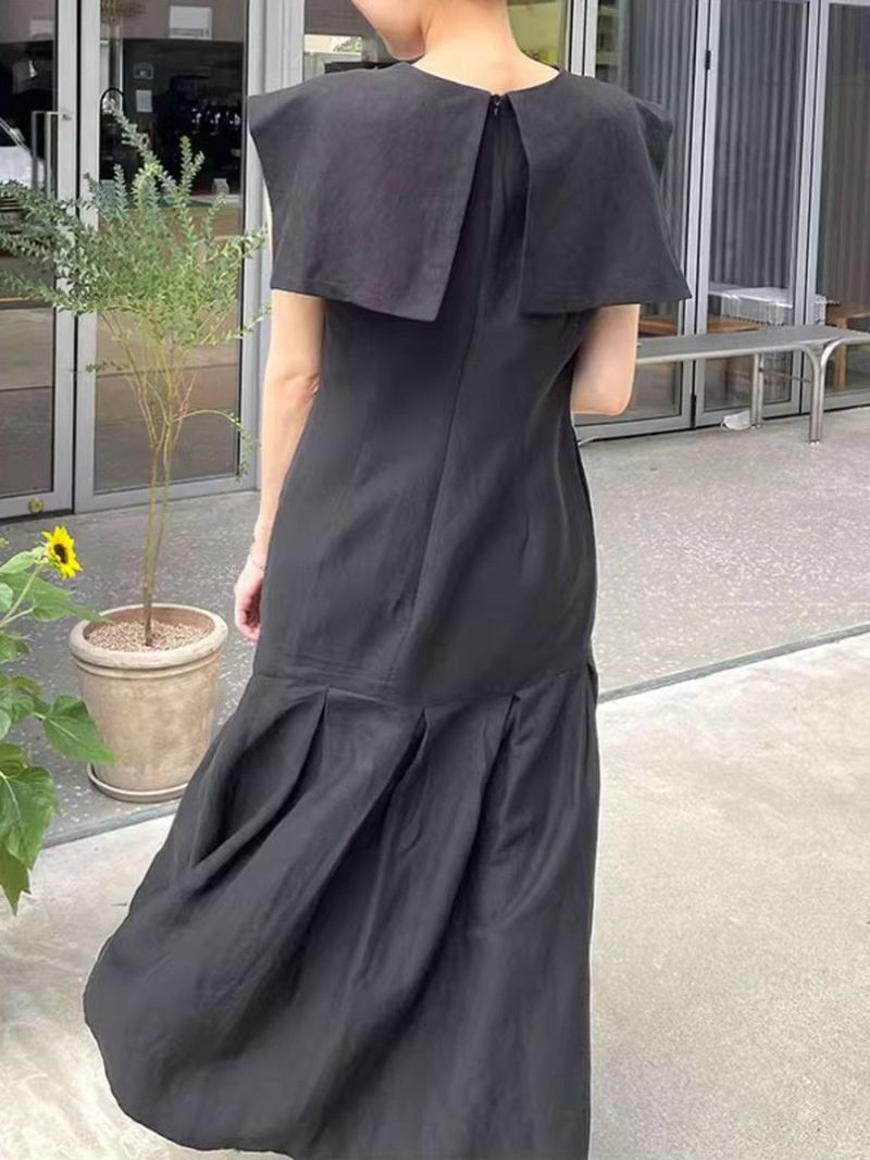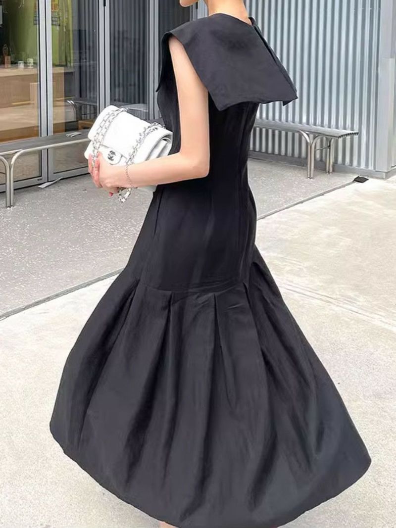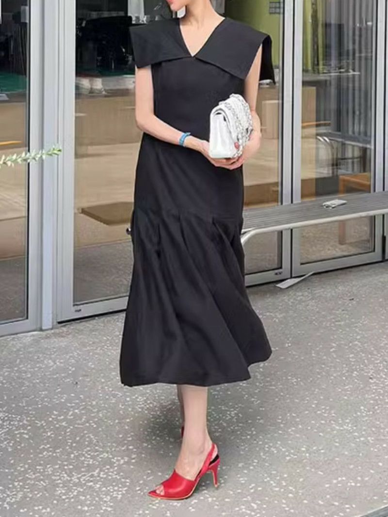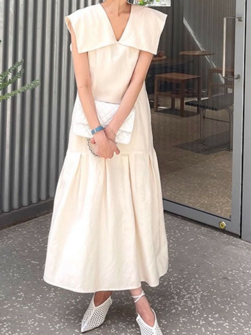 予約 2color セーラーカラー 裾フレア シャツ ワンピース