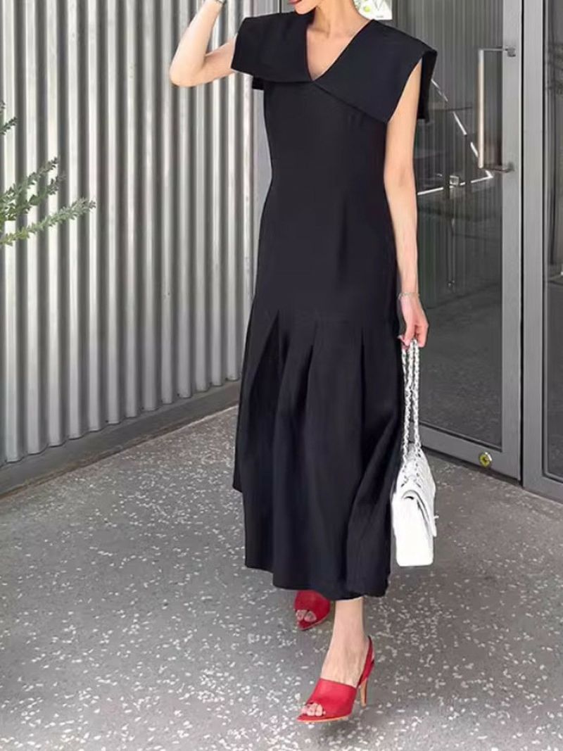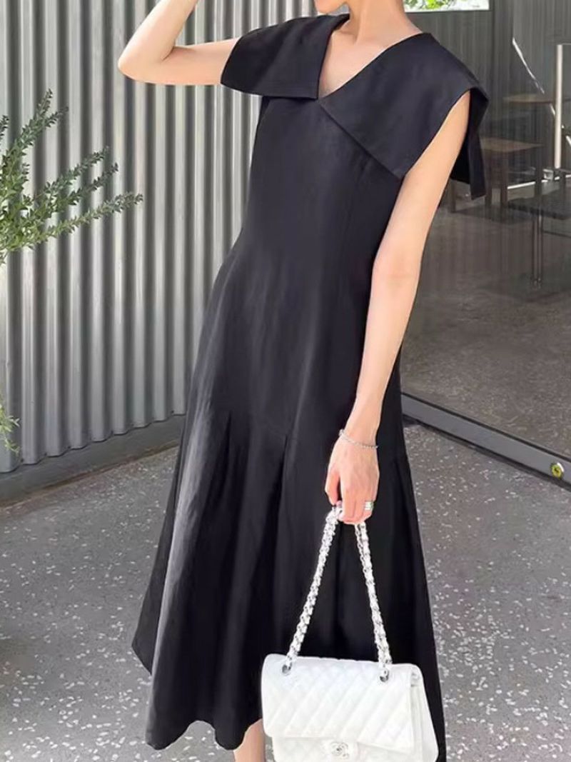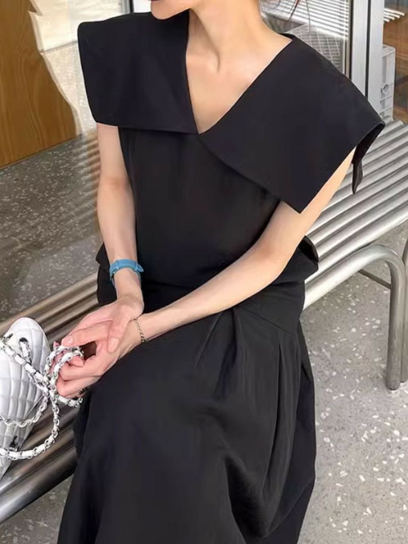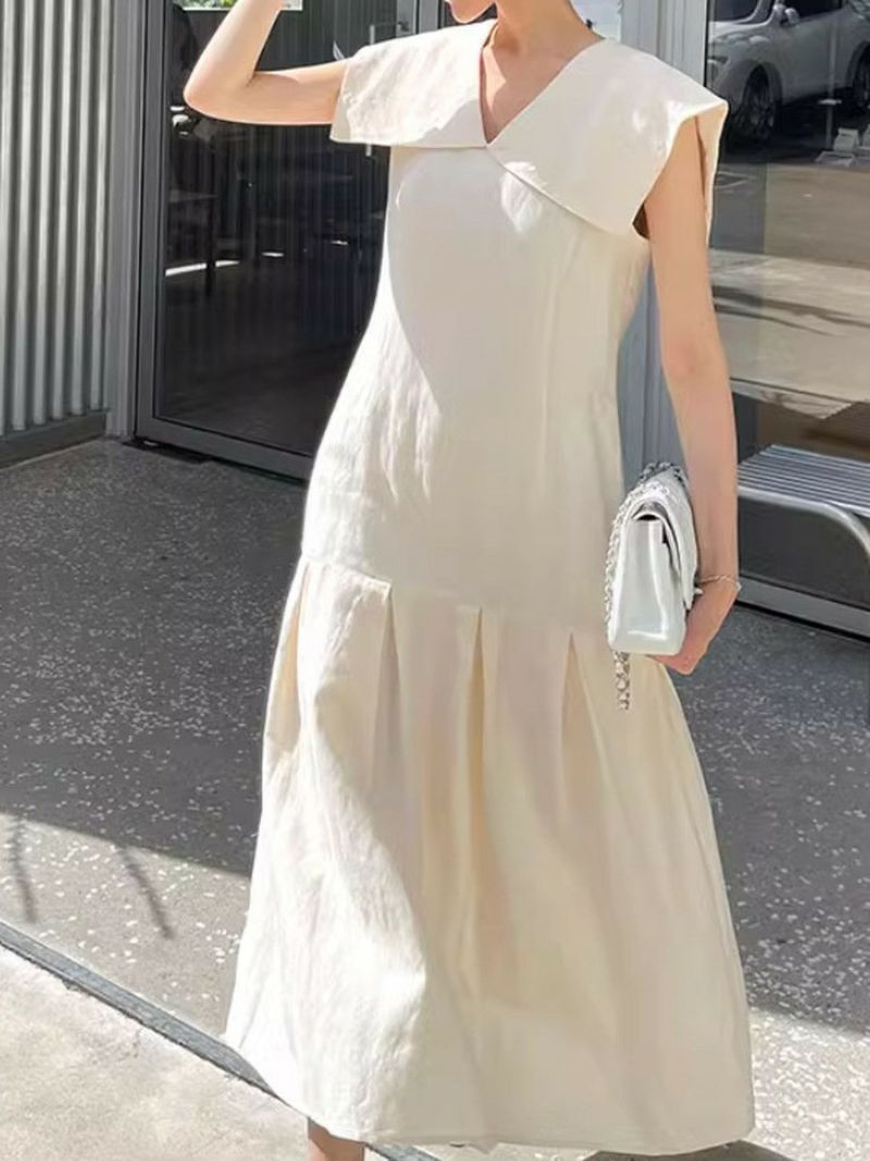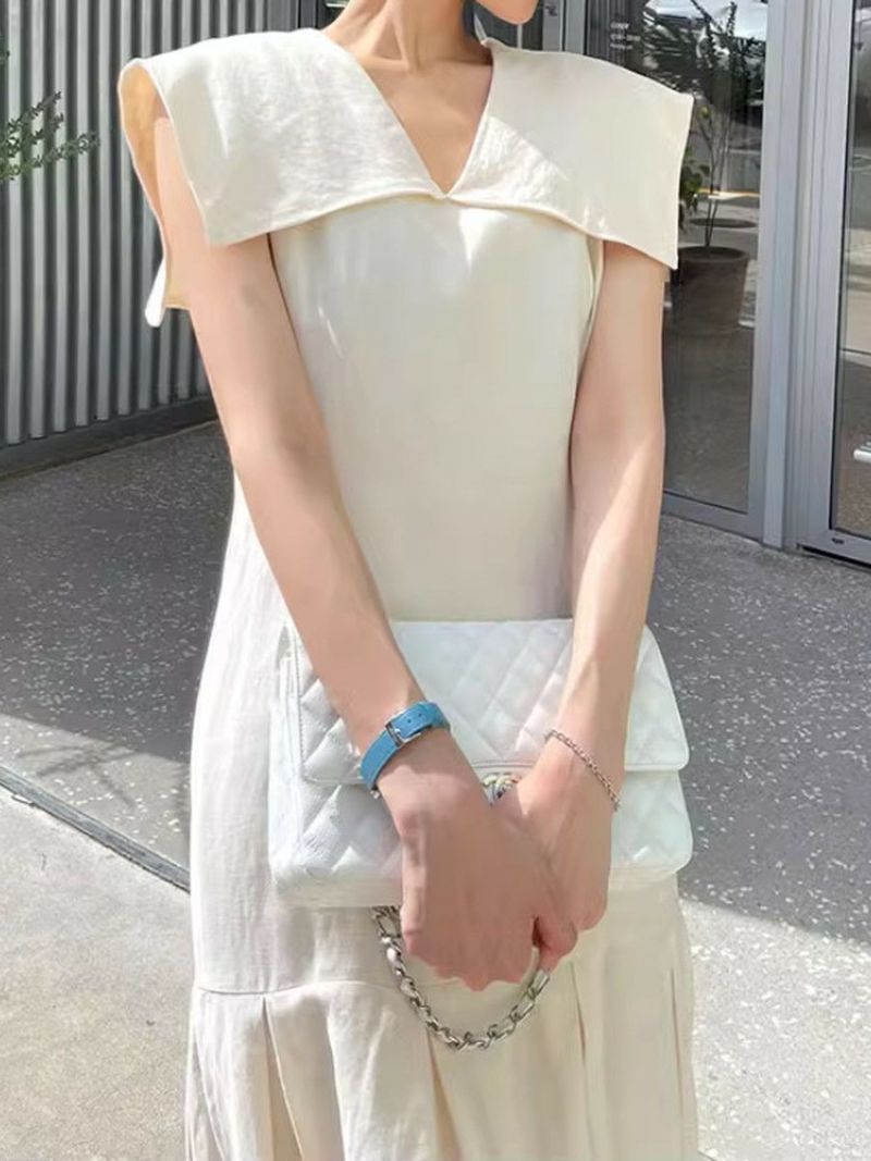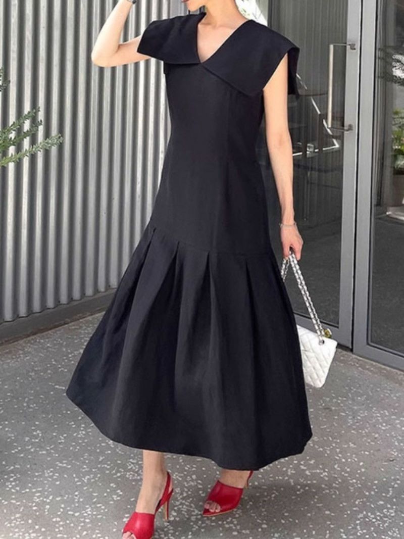 予約 2color セーラーカラー 裾フレア シャツ ワンピース