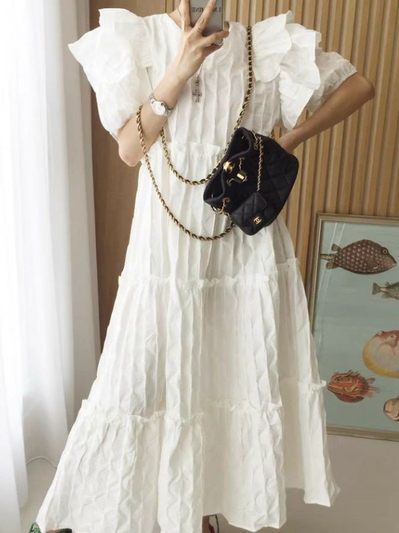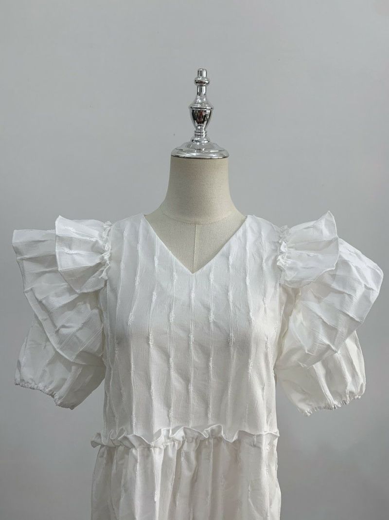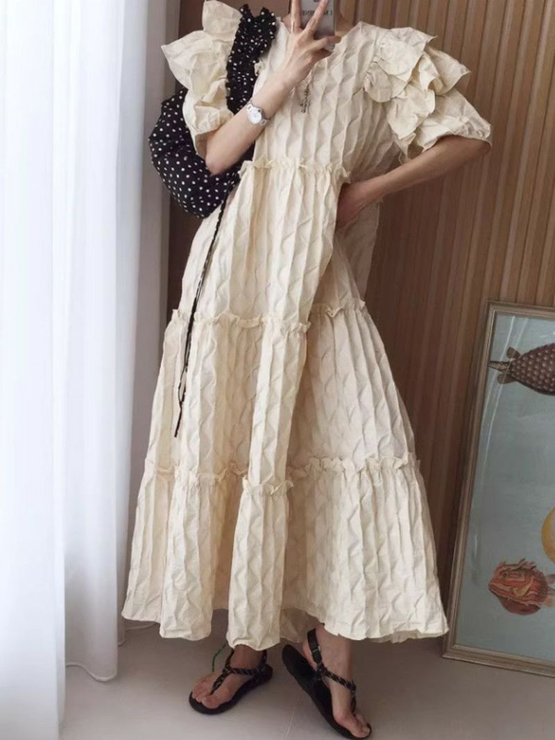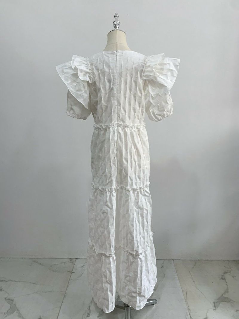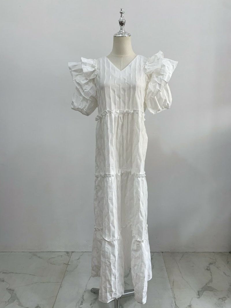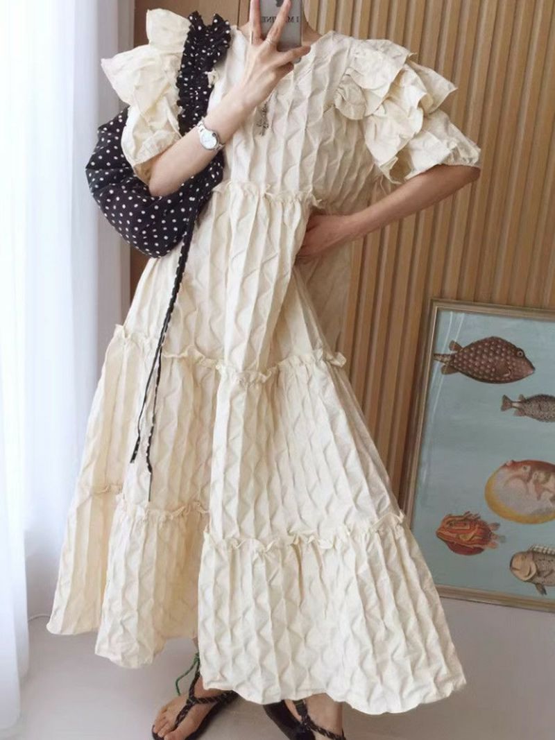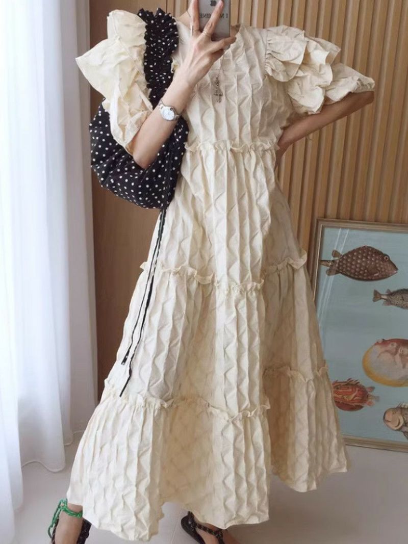 4. 予約 エンボス フリル ティアード ロング ワンピース