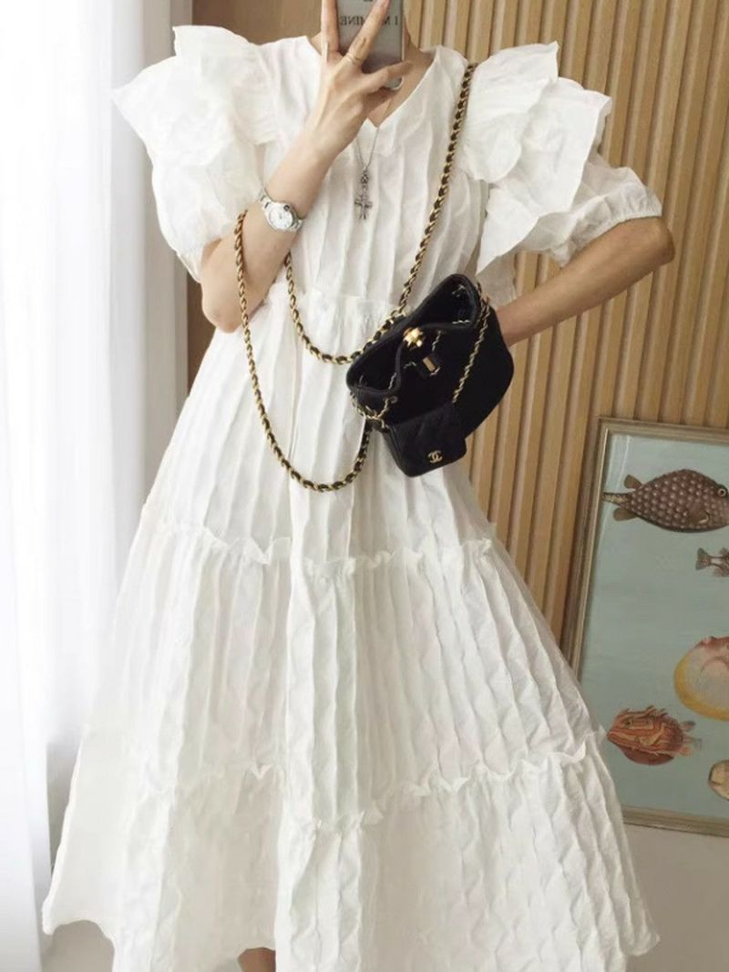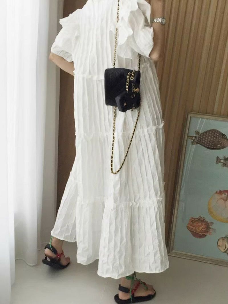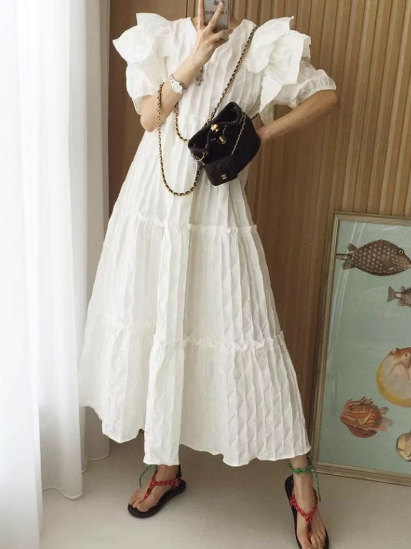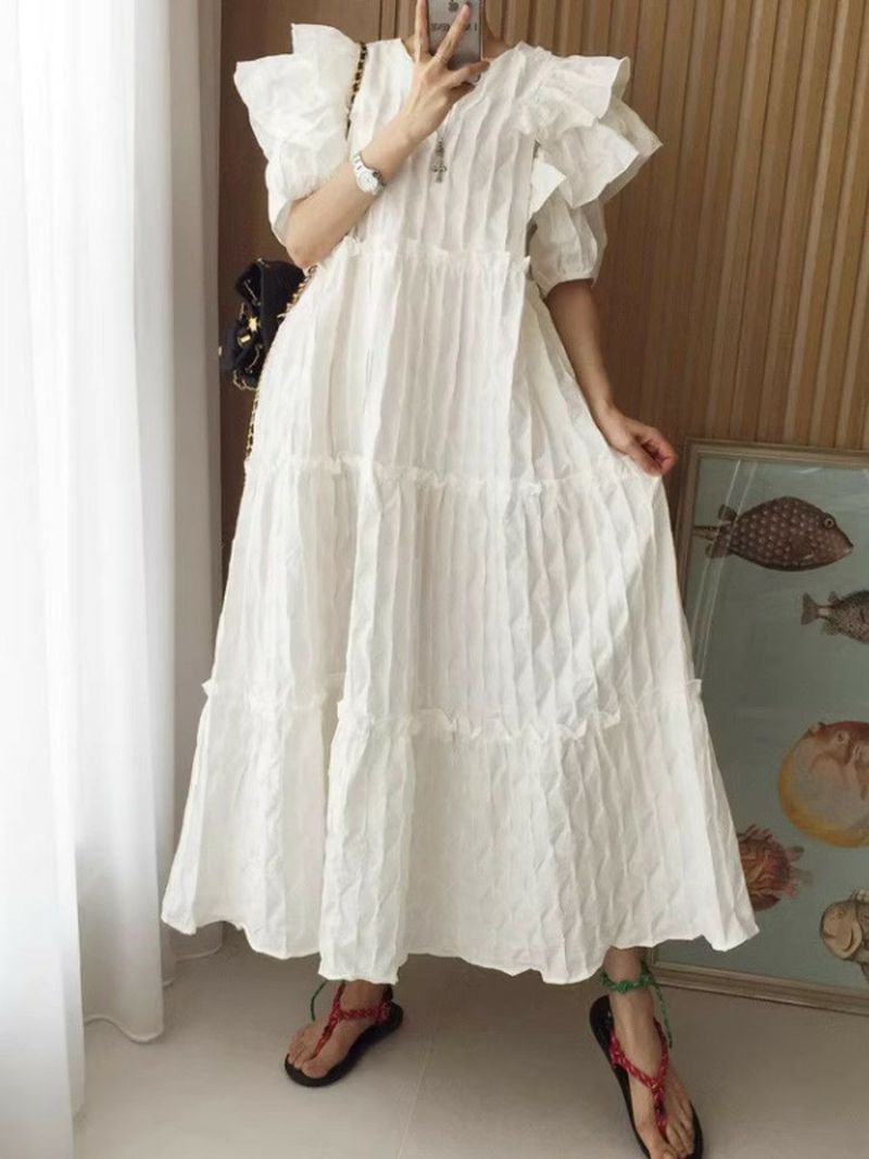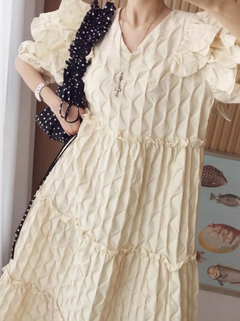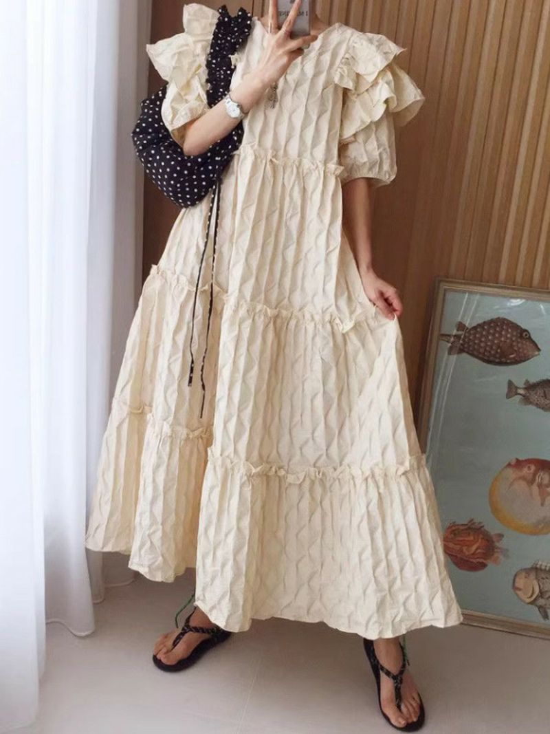4. 予約 エンボス フリル ティアード ロング ワンピース