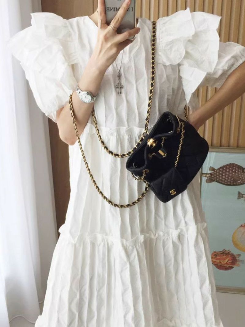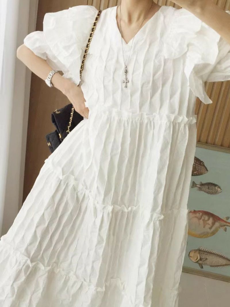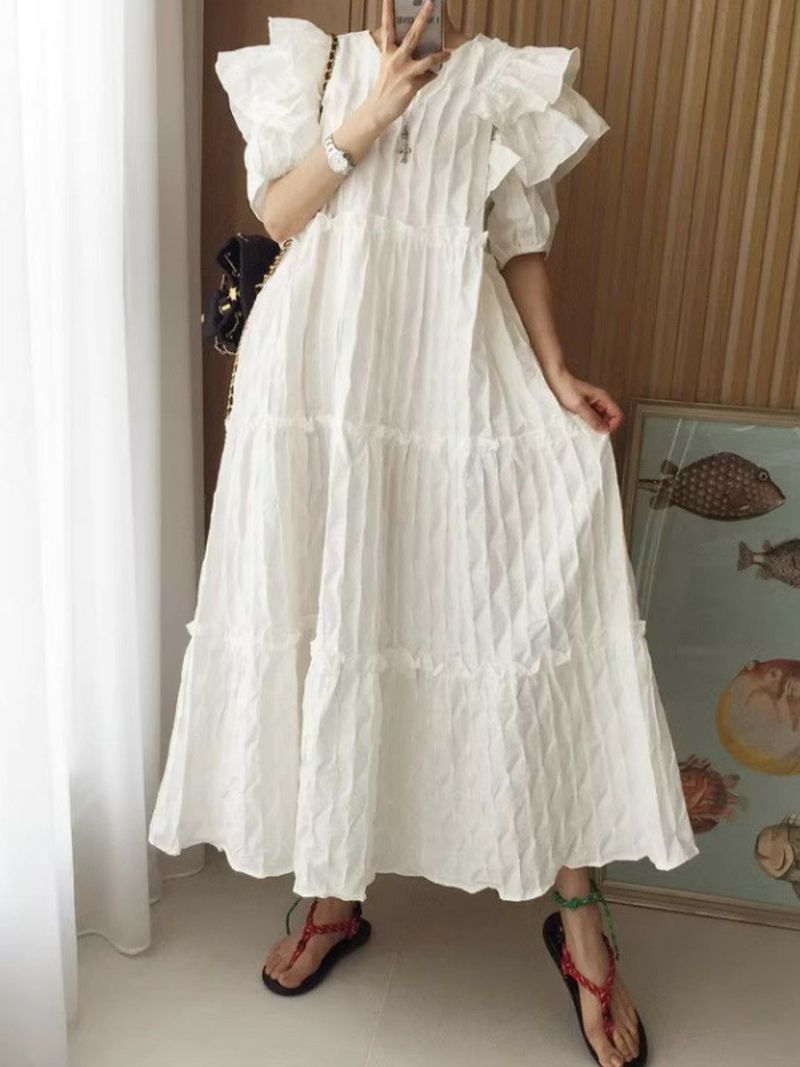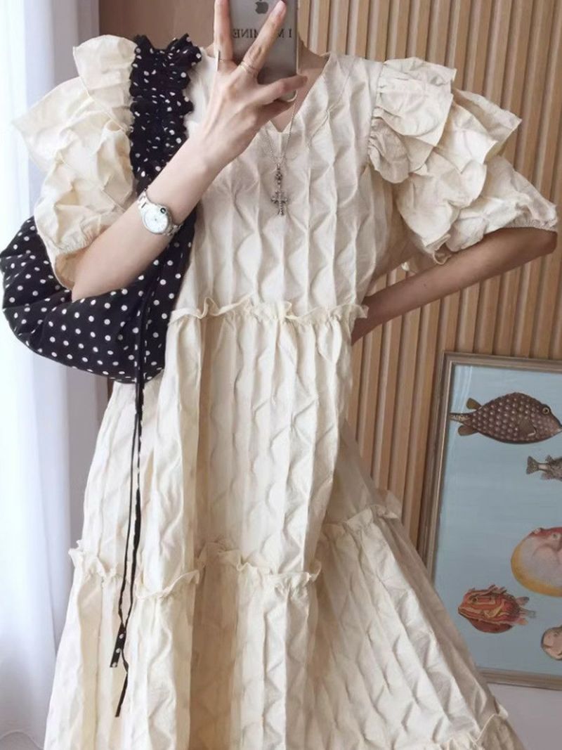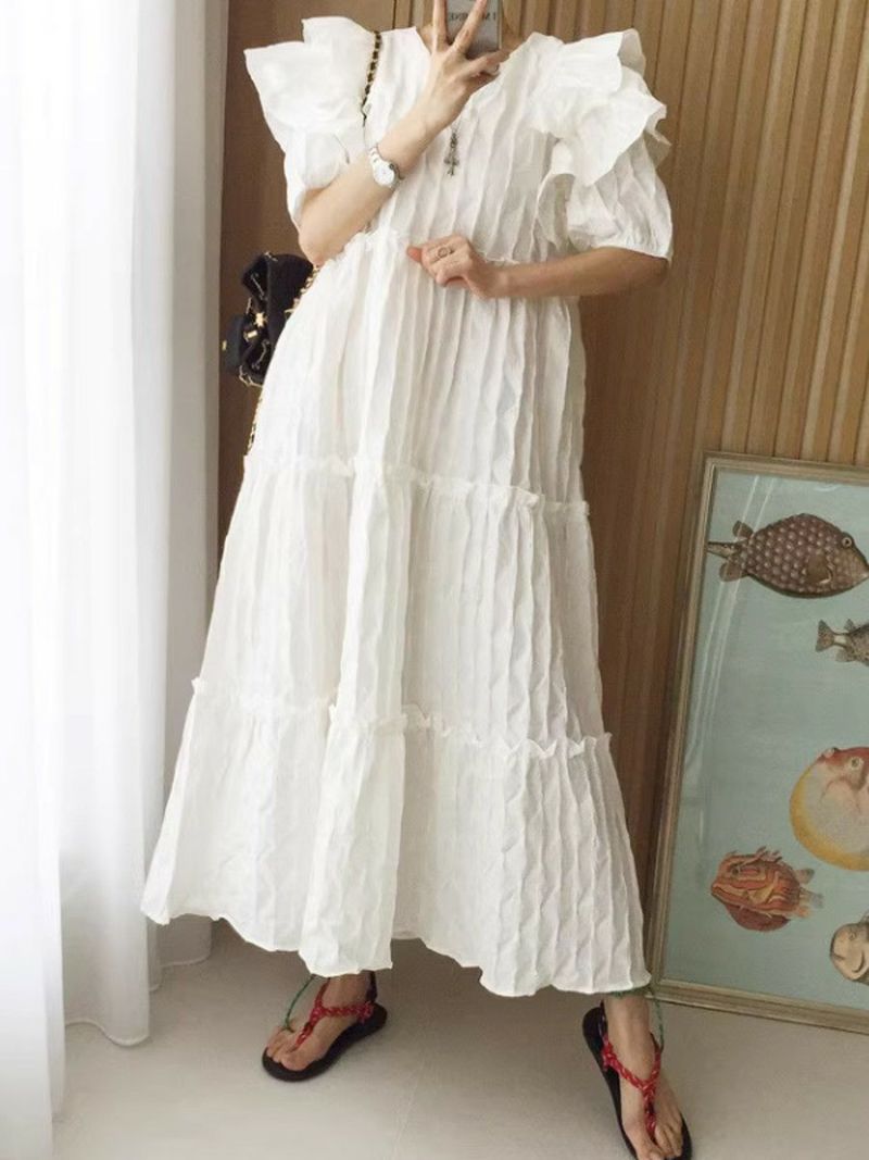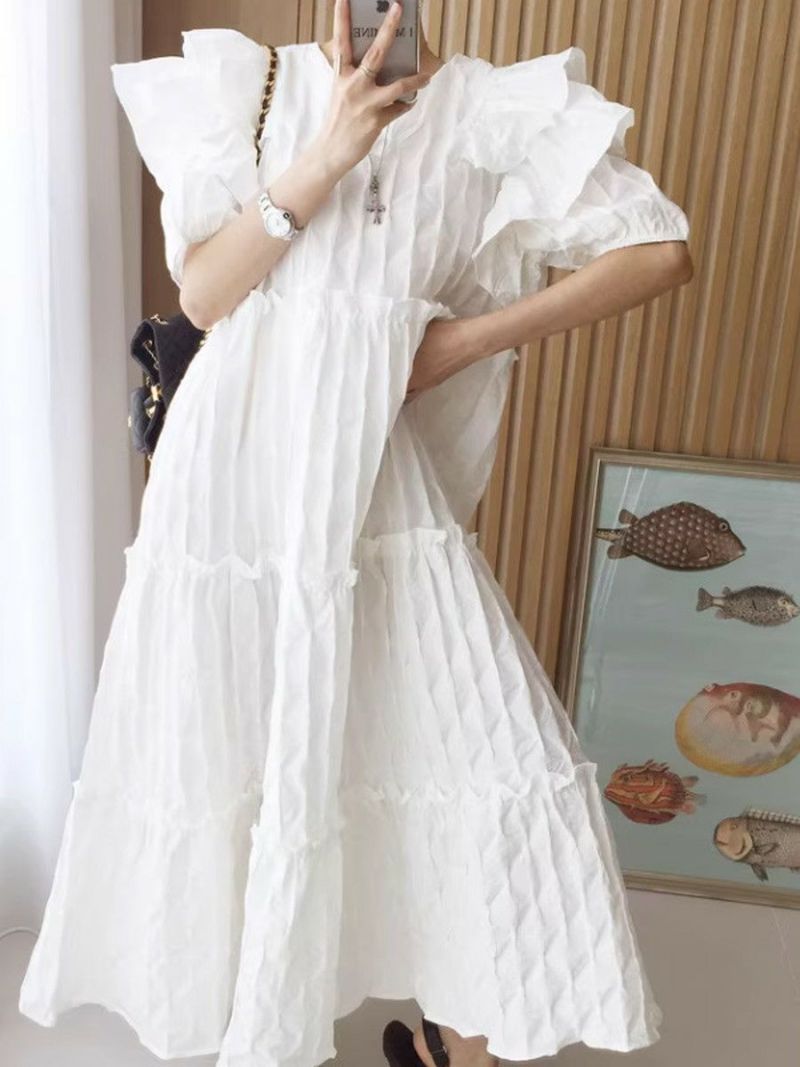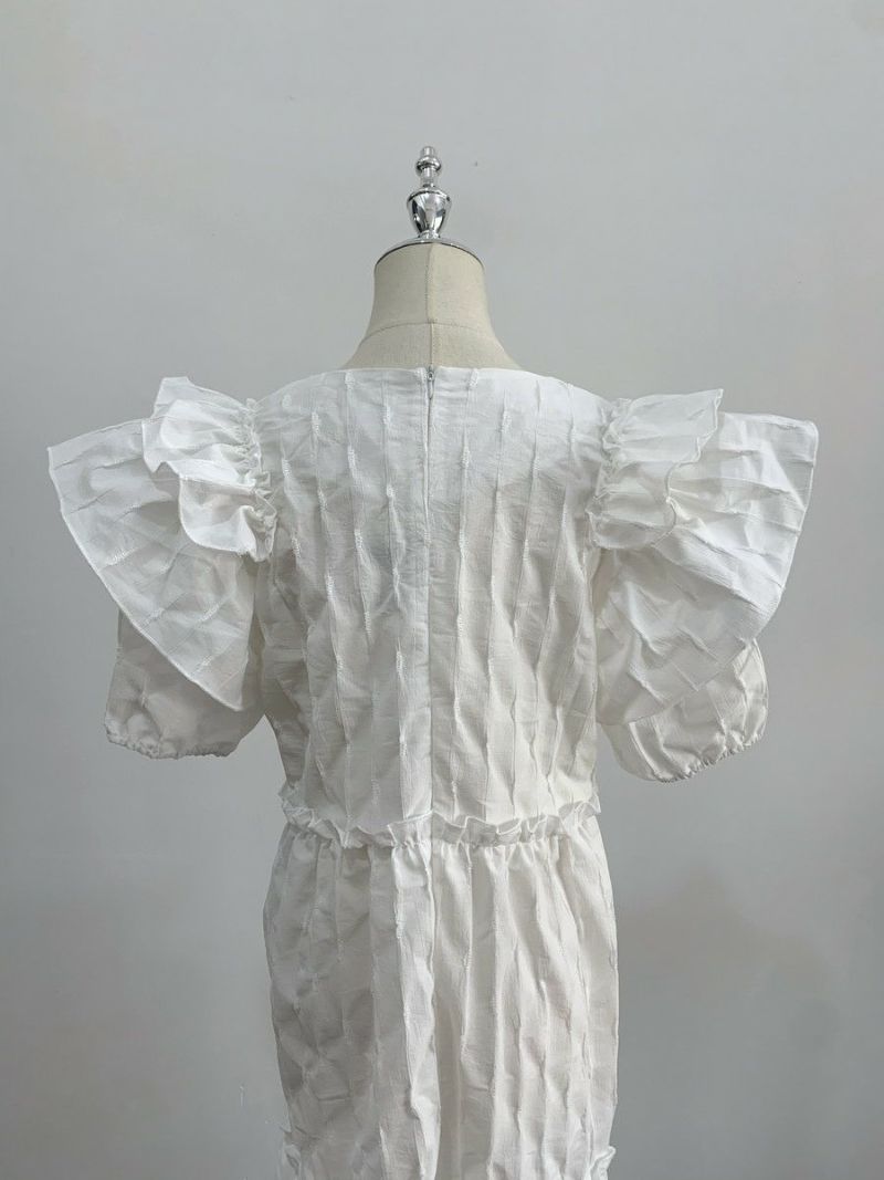 4. 予約 エンボス フリル ティアード ロング ワンピース