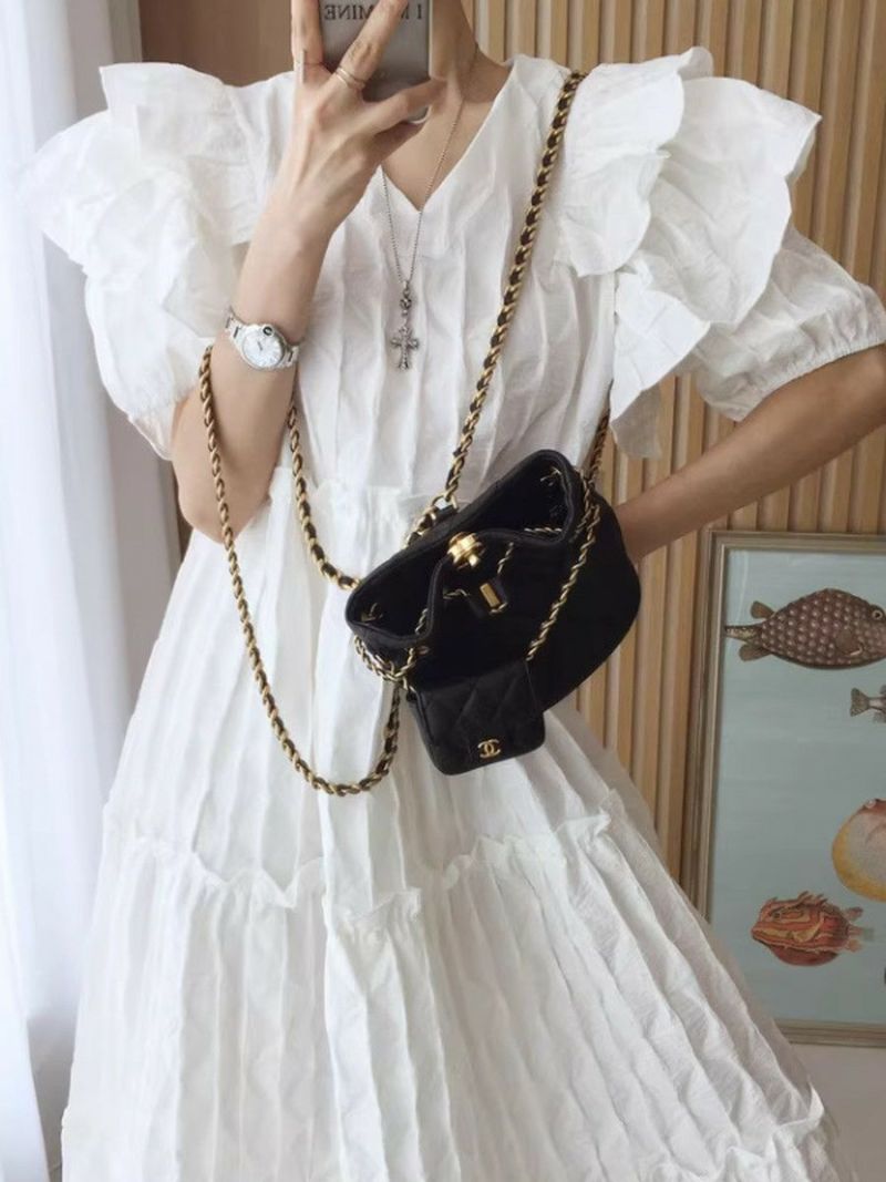 予約 エンボス フリル ティアード ロング ワンピース